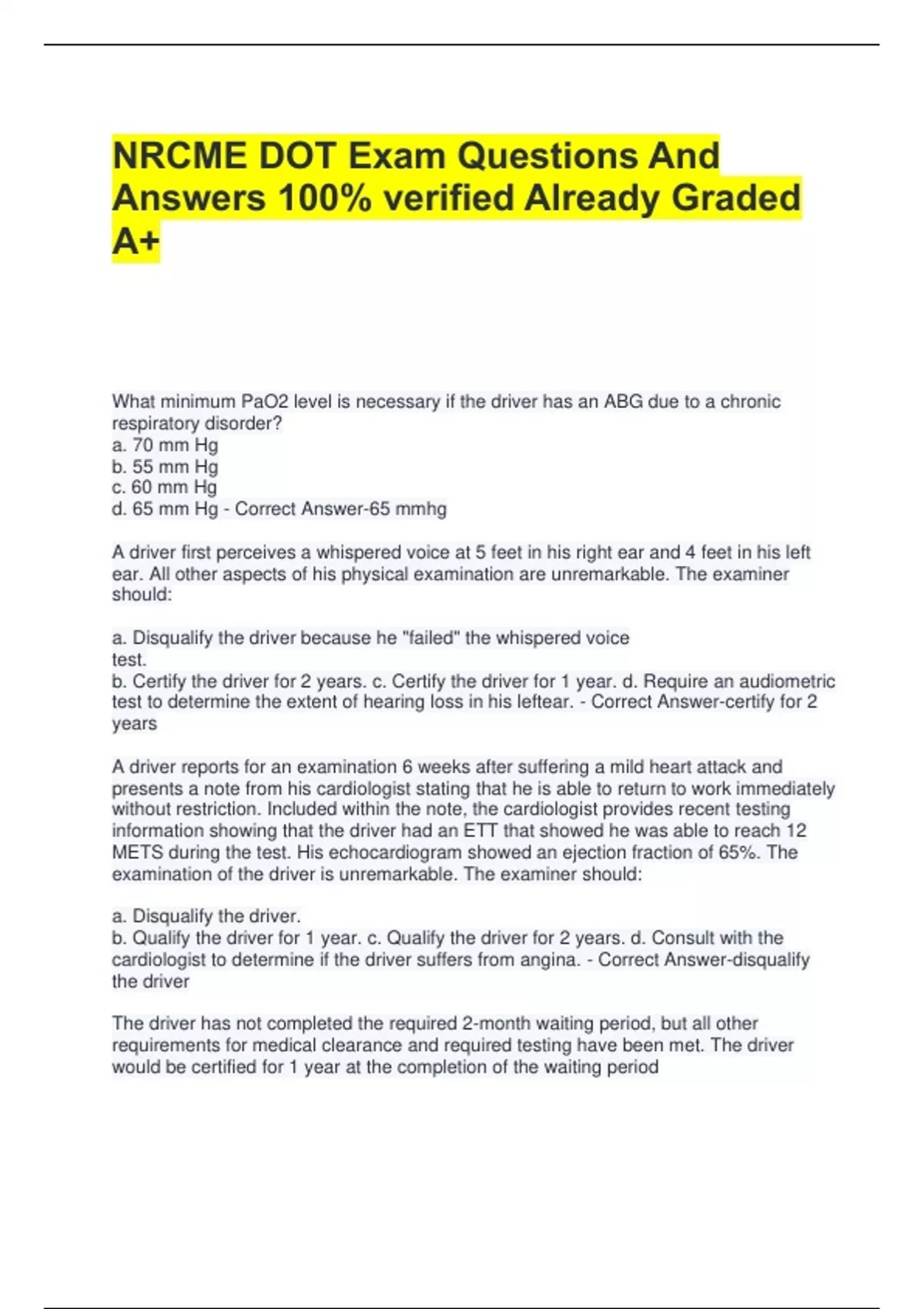 NRCME DOT Exam Questions And Answers 100% verified Already Graded A+