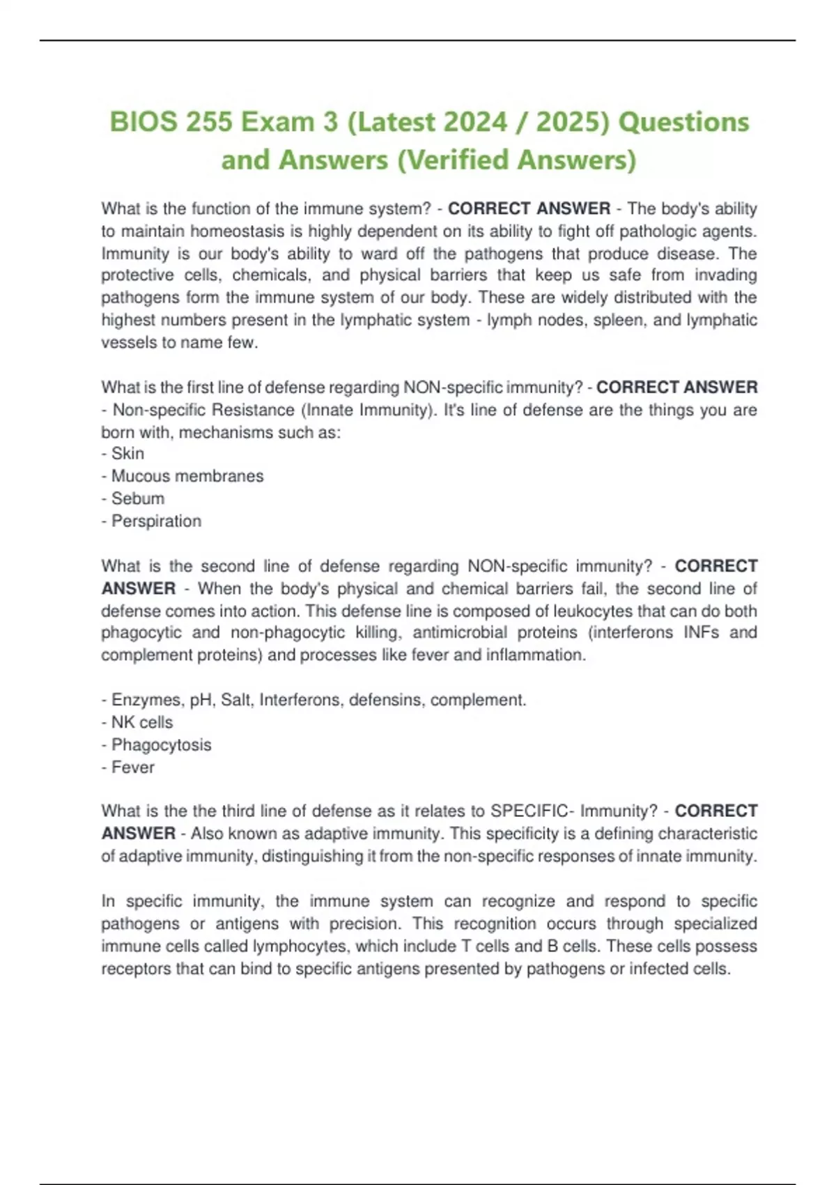 BIOS 255 EXAM 3 (Latest 2024 / 2025) Questions and Answers (Verified Answers)
