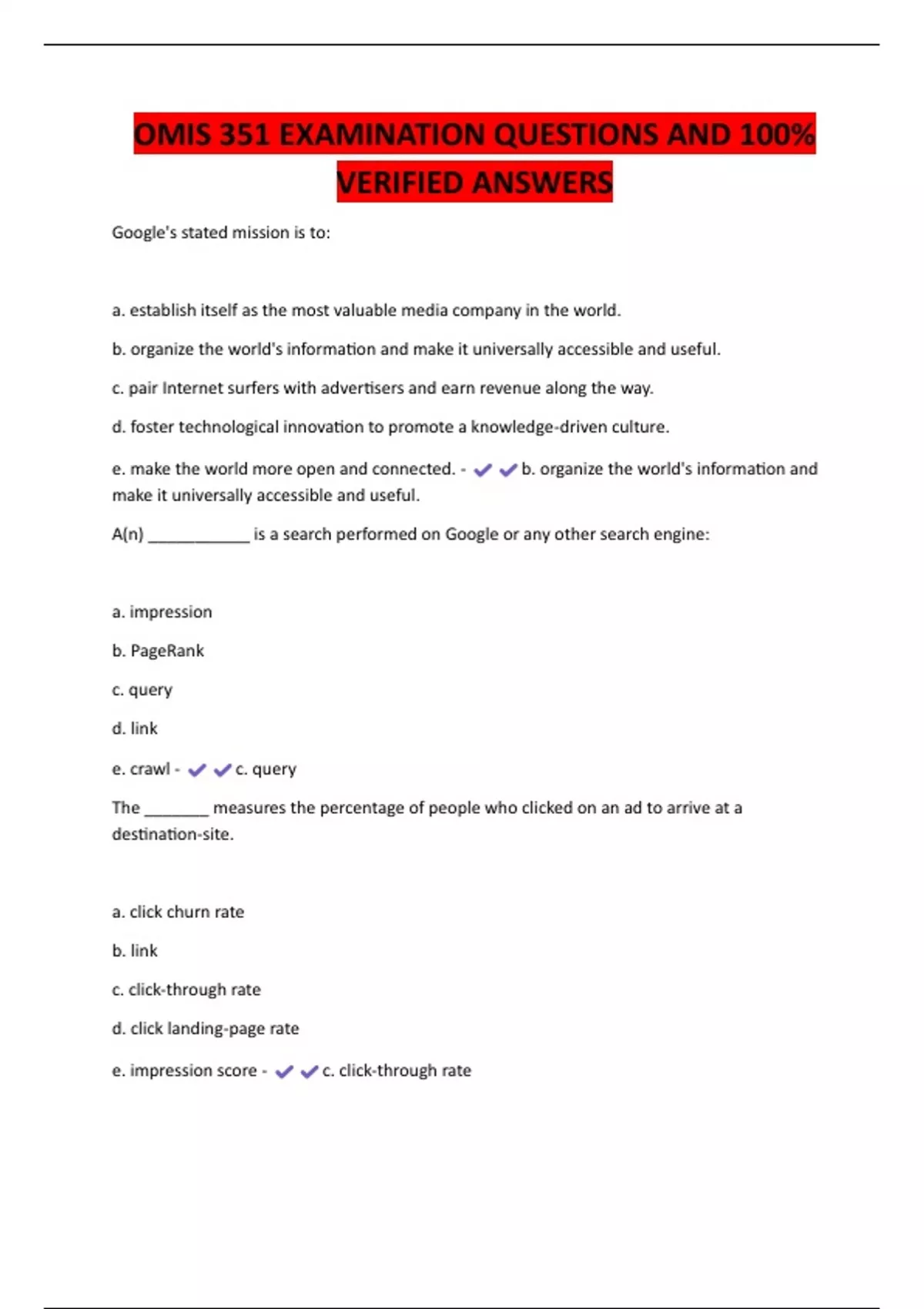 e. impression score - c. click-through rate