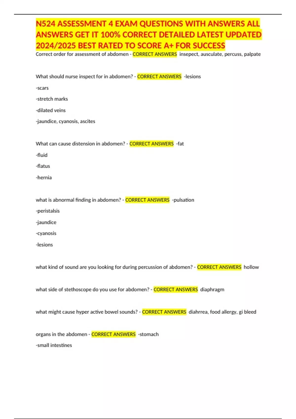 ,N524 ASSESSMENT 4 EXAM QUESTIONS WITH ANSWERS ALL
