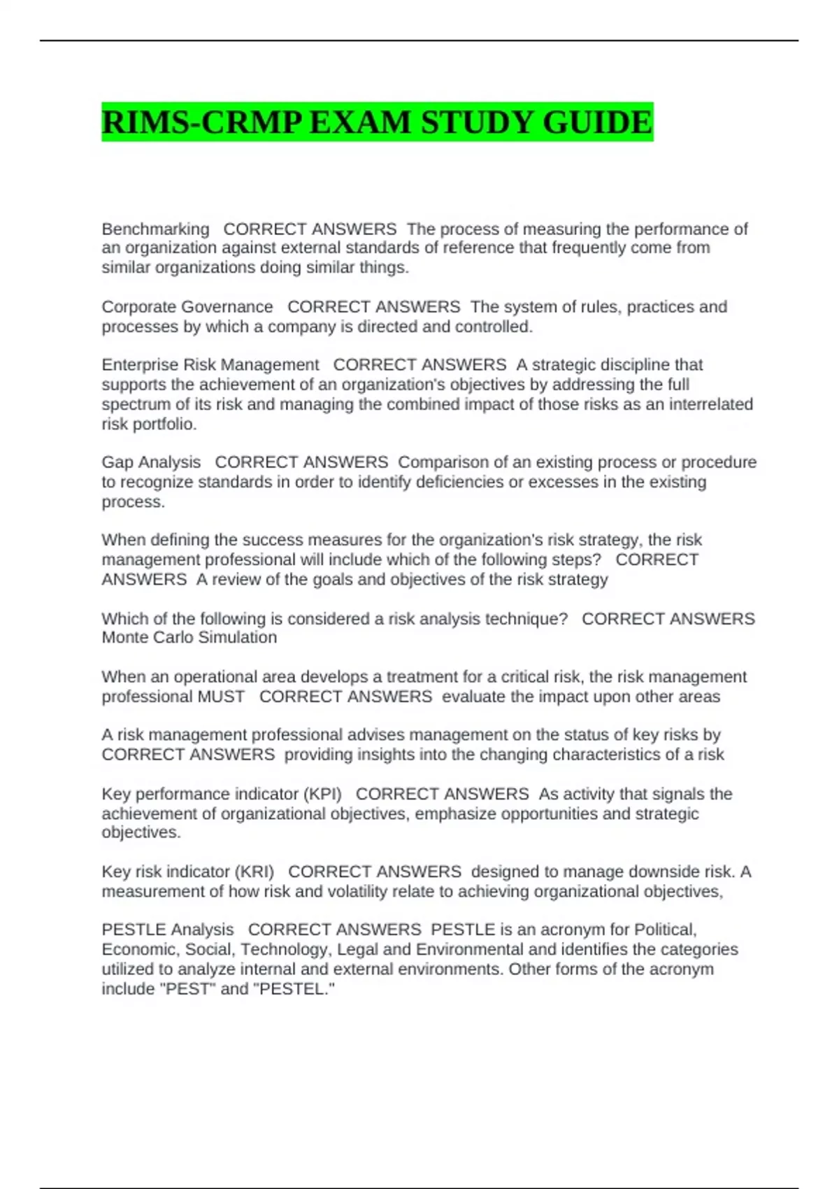 Enterprise Risk Management CORRECT ANSWERS A strategic discipline that