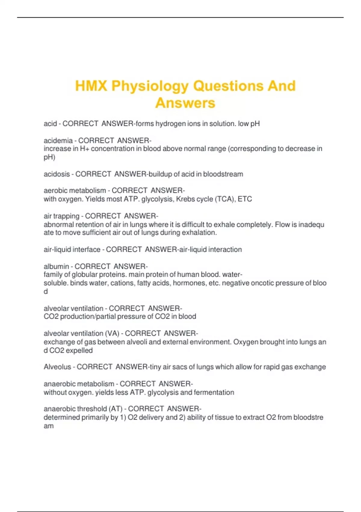 HMX Physiology Questions And