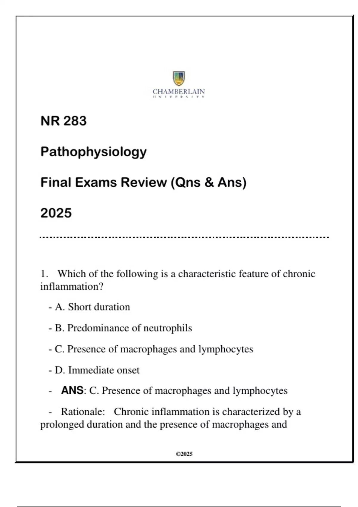 - ANS: C. Presence of macrophages and lymphocytes