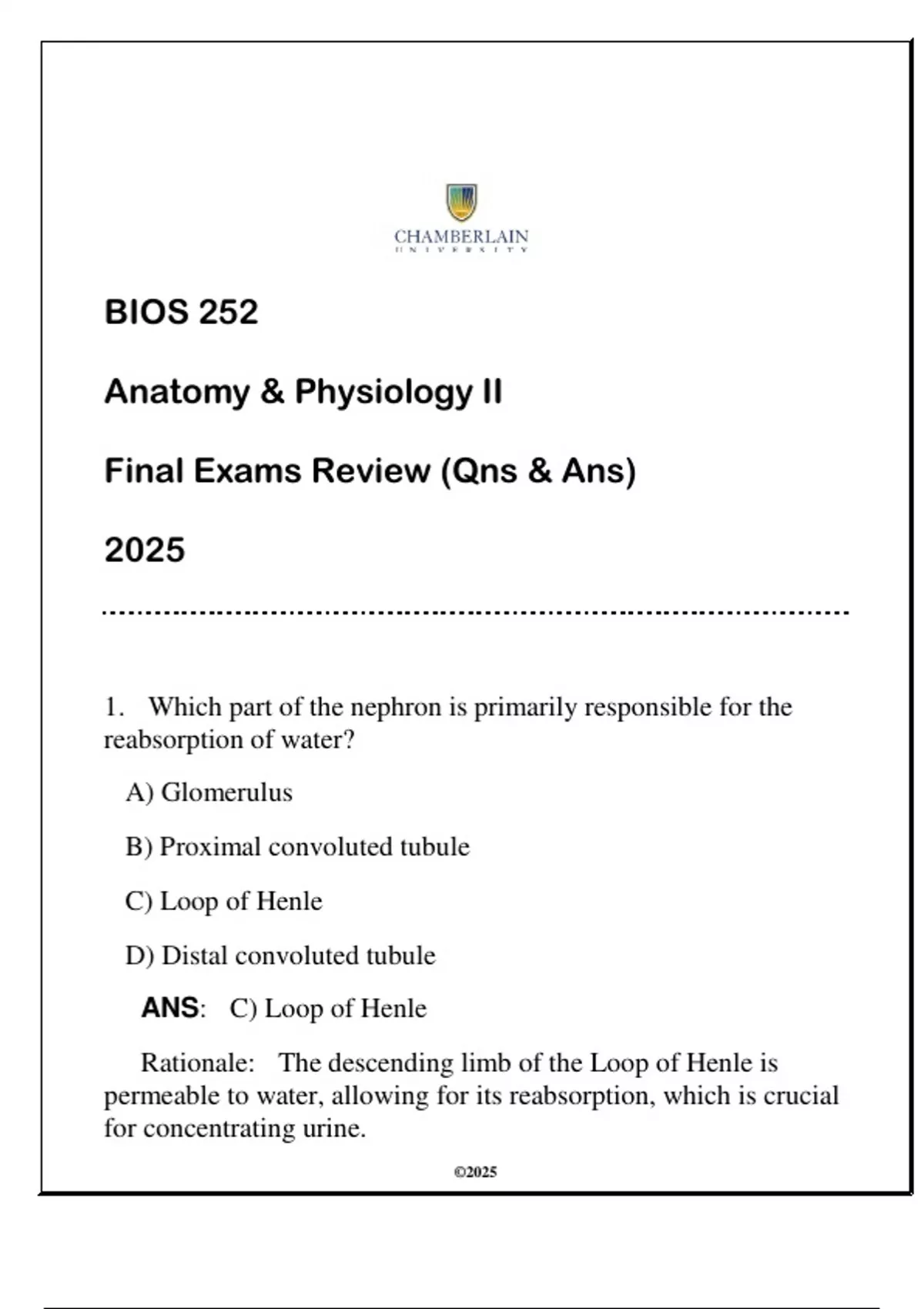 ANS: C) Loop of Henle