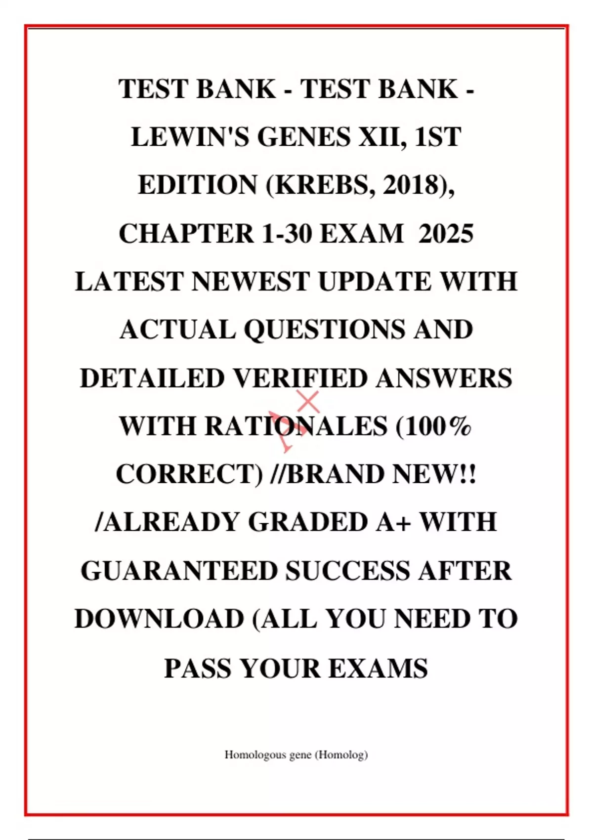 TEST BANK - TEST BANK - LEWIN'S GENES XII, 1ST EDITION (KREBS, 2018), CHAPTER 1-30 EXAM 2025 LATEST NEWEST UPDATE WITH ACTUAL QUESTIONS AND DETAILED VERIFIED ANSWERS WITH RATIONALES (100% CORRECT) //BRAND NEW!! /ALREADY GRADED A+ WITH GUARANTEED S