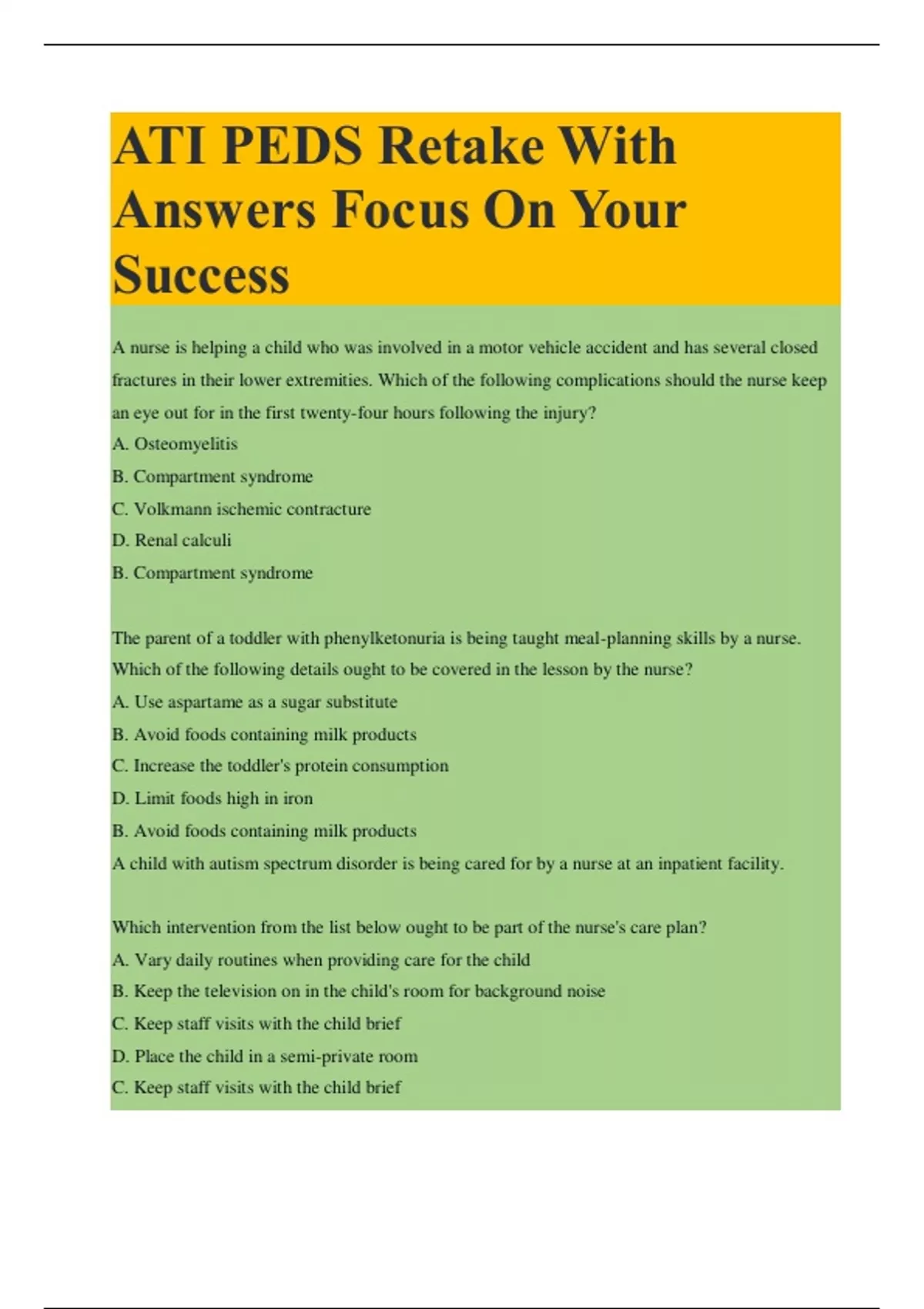 ATI PEDS Retake With Answers Focus On Your Success