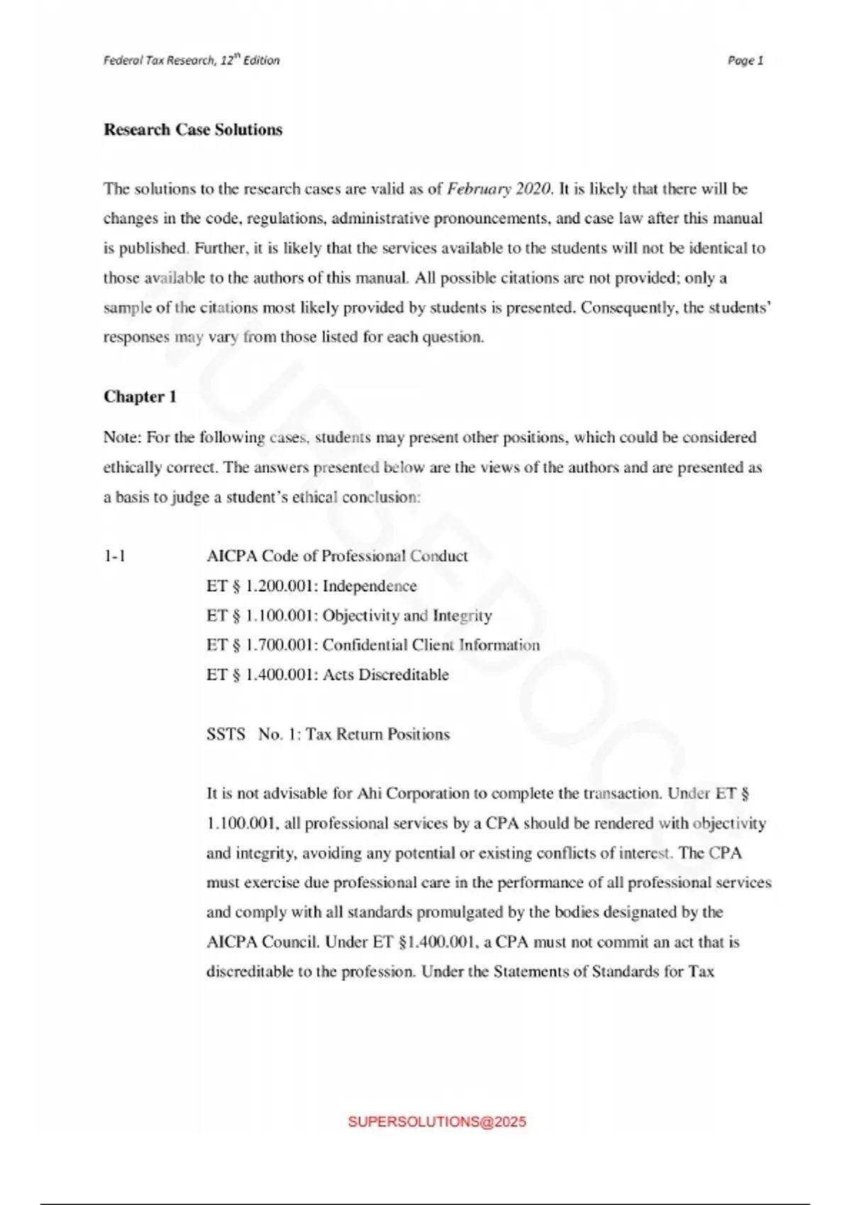 Research Case Solutions - Sawyers & Gill, Federal Tax Research 12th Edition, Verified Chapters, latest Revised Version.