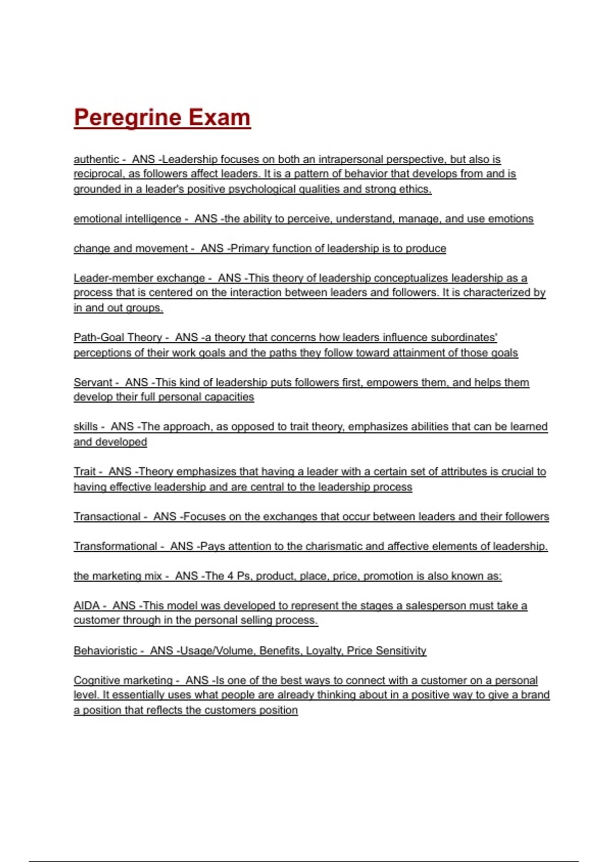 Transactional - ANS -Focuses on the exchanges that occur between leaders and their followers