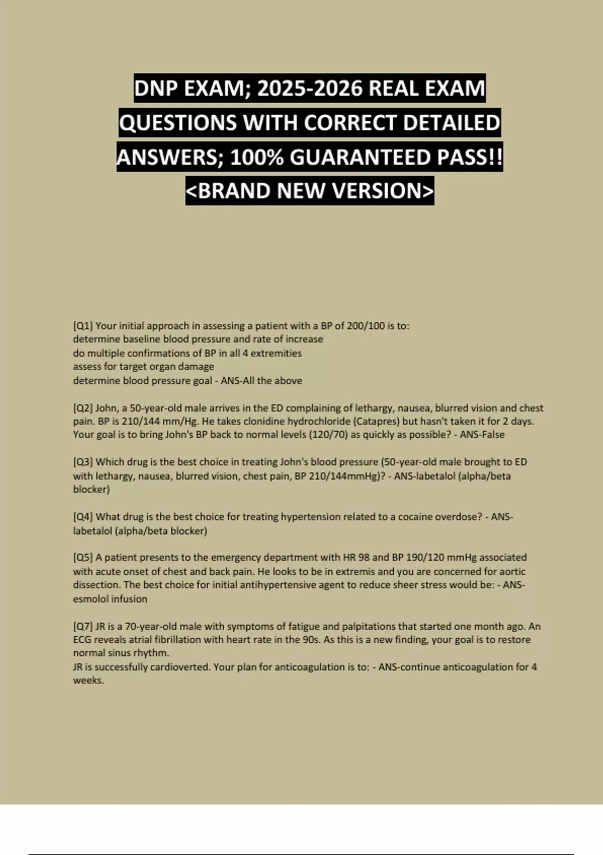 [Q5] A patient presents to the emergency department with HR 98 and BP 190/120 mmHg associated