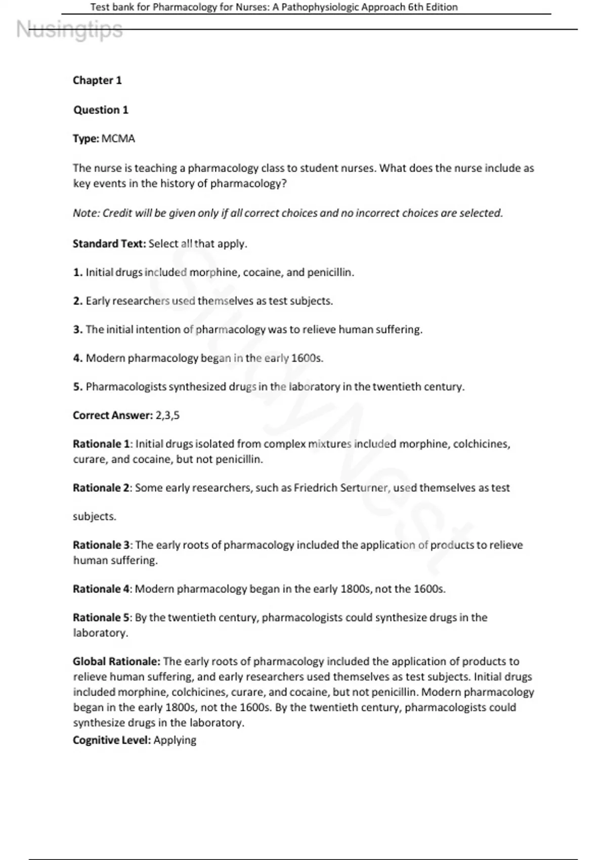 , Test bank for Pharmacology for Nurses: A Pathophysiologic Approach 6th Edition