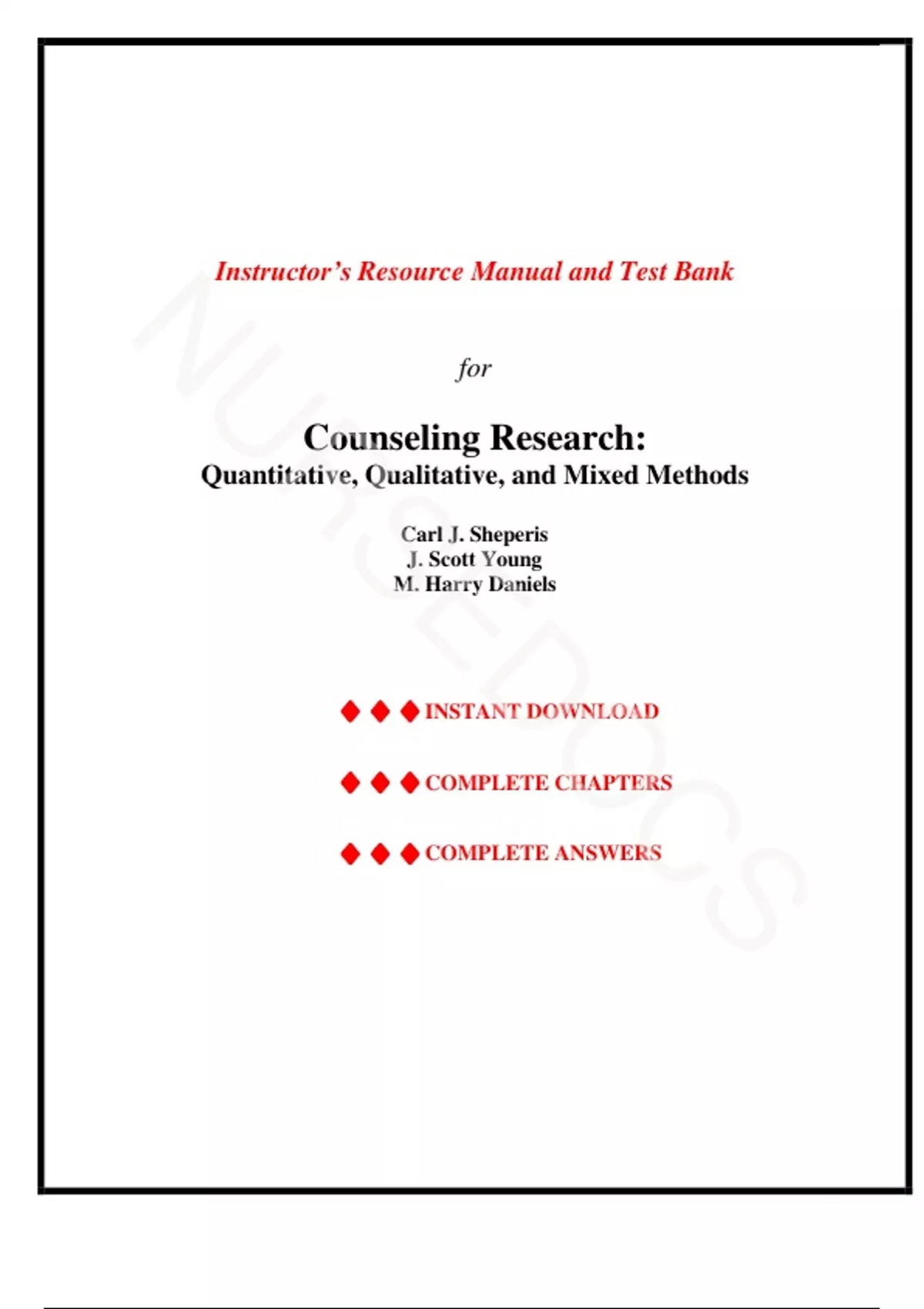 Instructor's Manual and Test Bank - Counseling Research: Quantitative, Qualitative, and Mixed Methods 2nd Edition (Carl Sheperis, 2016), Chapter 1-18
