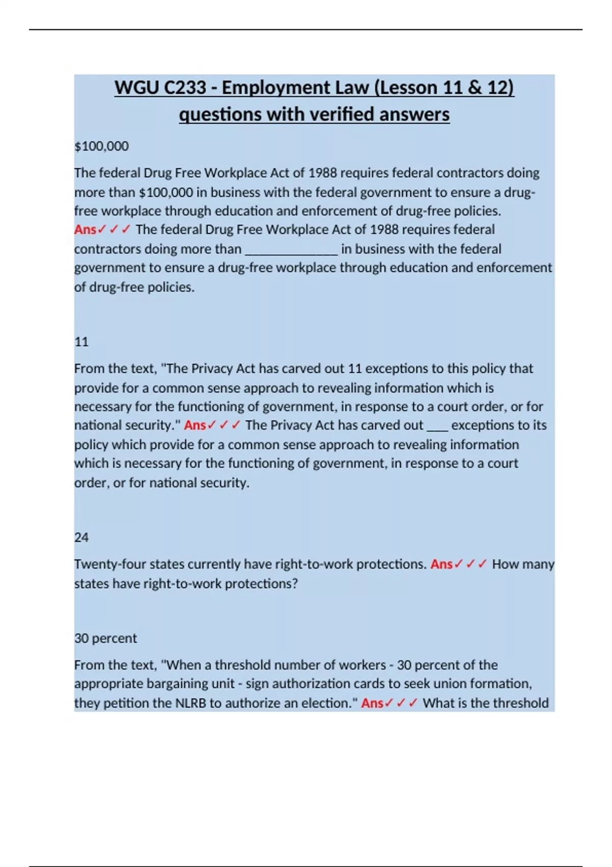 Ans✓✓✓ The federal Drug Free Workplace Act of 1988 requires federal