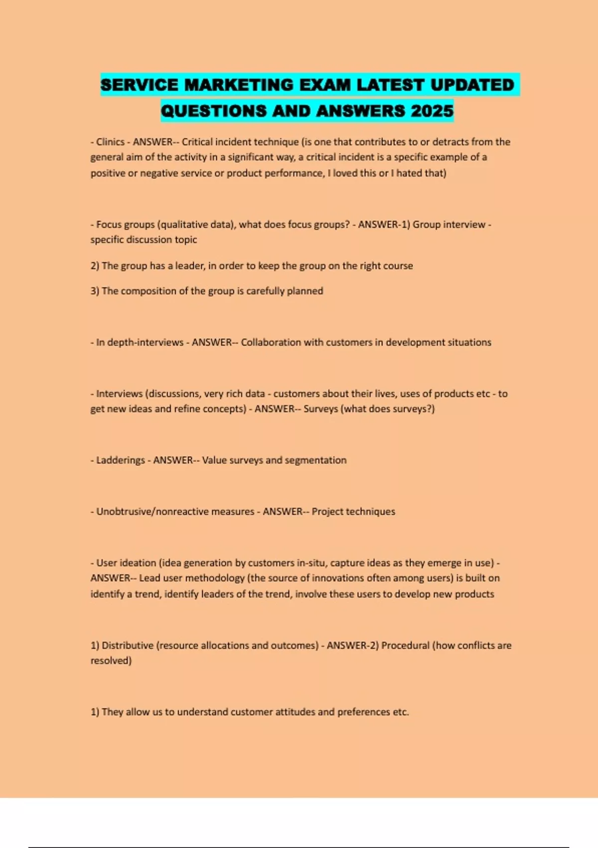 SERVICE MARKETING EXAM LATEST UPDATED QUESTIONS AND ANSWERS 2025