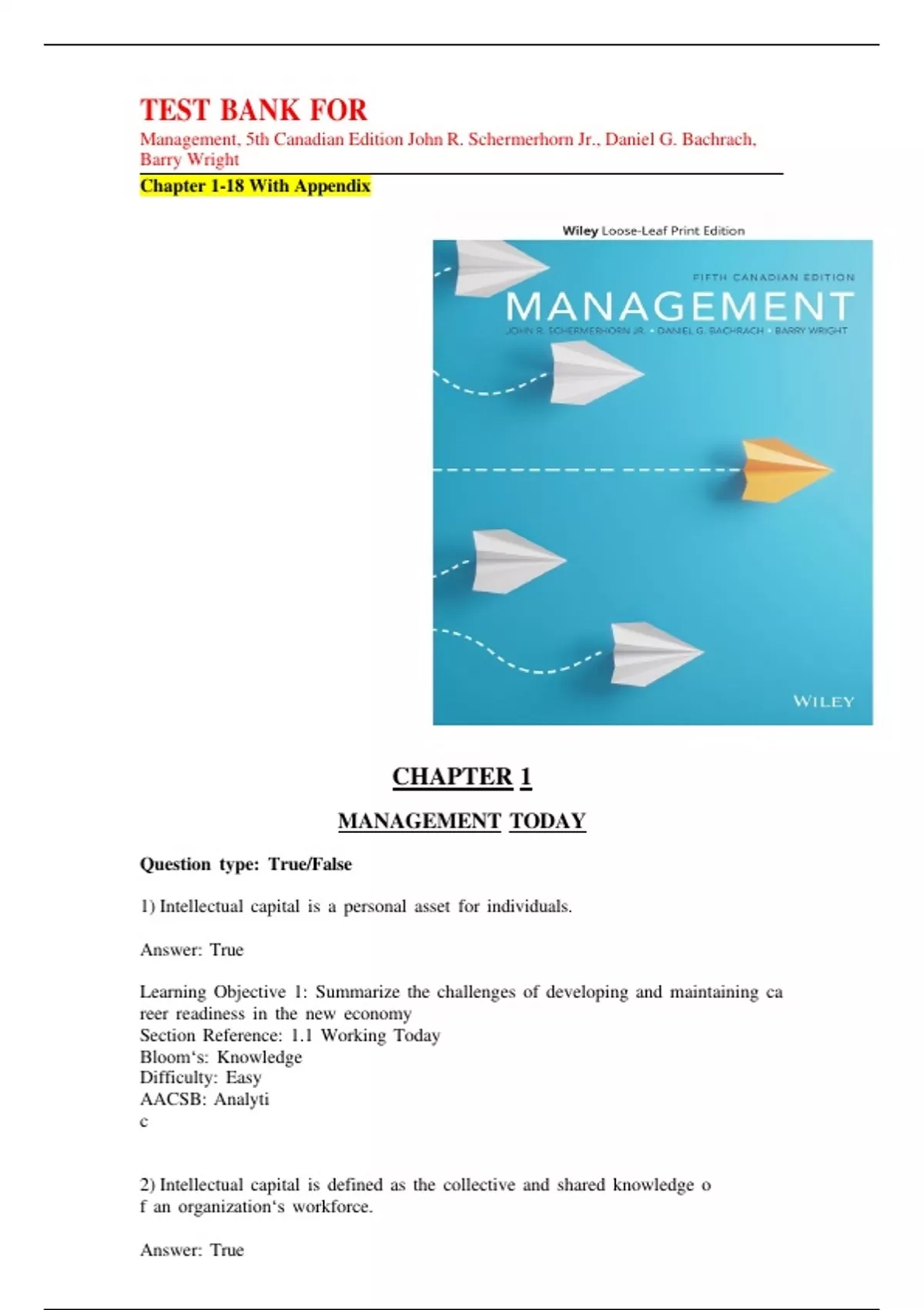 Management, 5th Canadian Edition John R. Schermerhorn Jr., Daniel G. Bachrach,