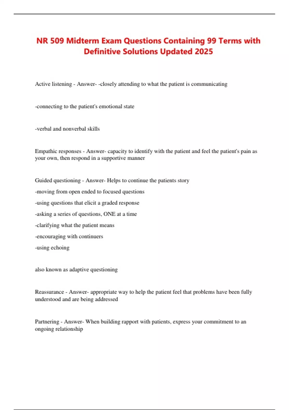 Reassurance - Answer- appropriate way to help the patient feel that problems have been fully