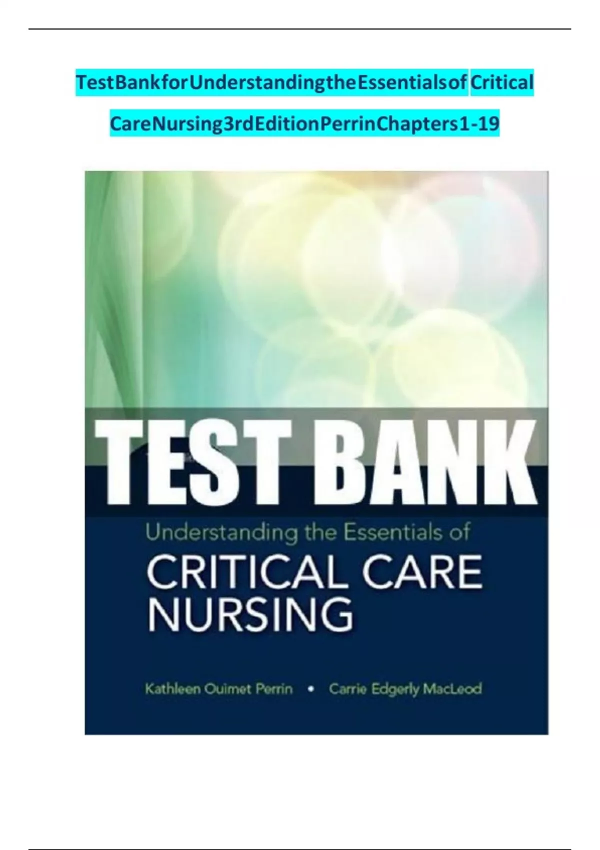 , TESTBANK FOR UNDERSTANDING THE ESSENTIALS OF CRITICAL CARENURSING 3RD EDITION BY KATHLEEN