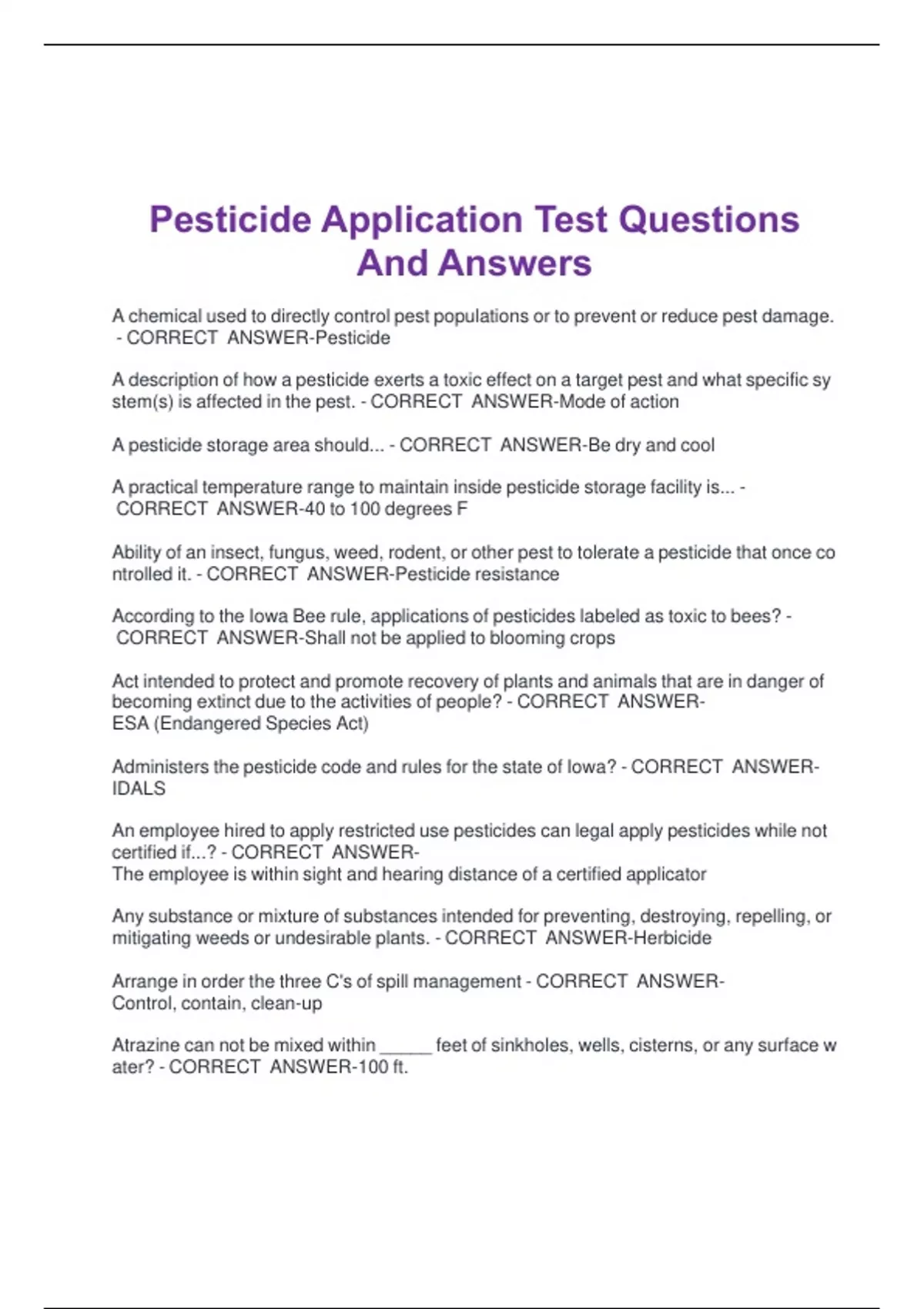 Pesticide Application Test Questions And Answers Pesticide Application Test Questions And Answers Pesticide Application Test Questions And Answers