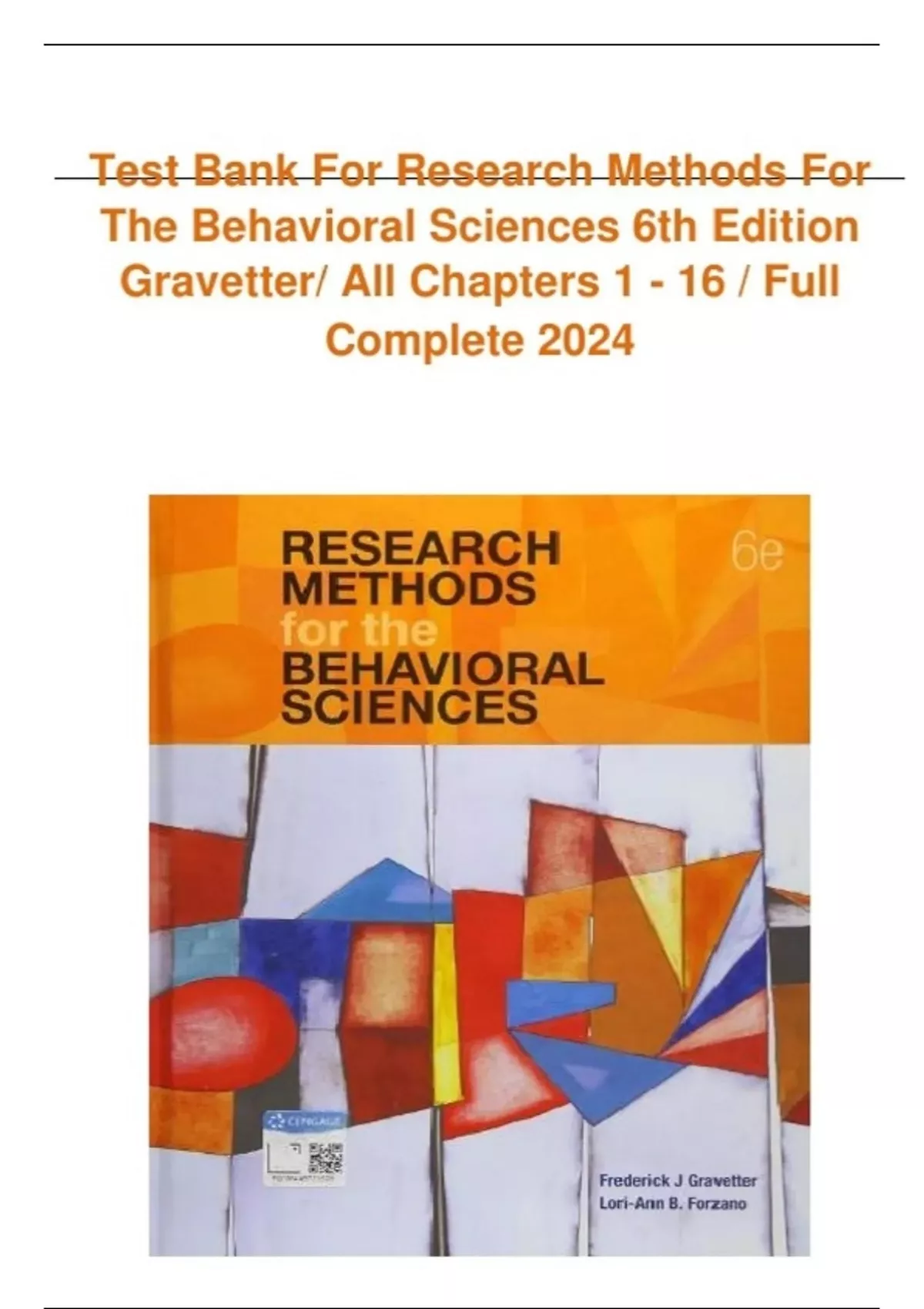 Test Bank for Research Methods for the Behavioral Sciences 6th Edition Gravetter All Chapters 1 - 16.