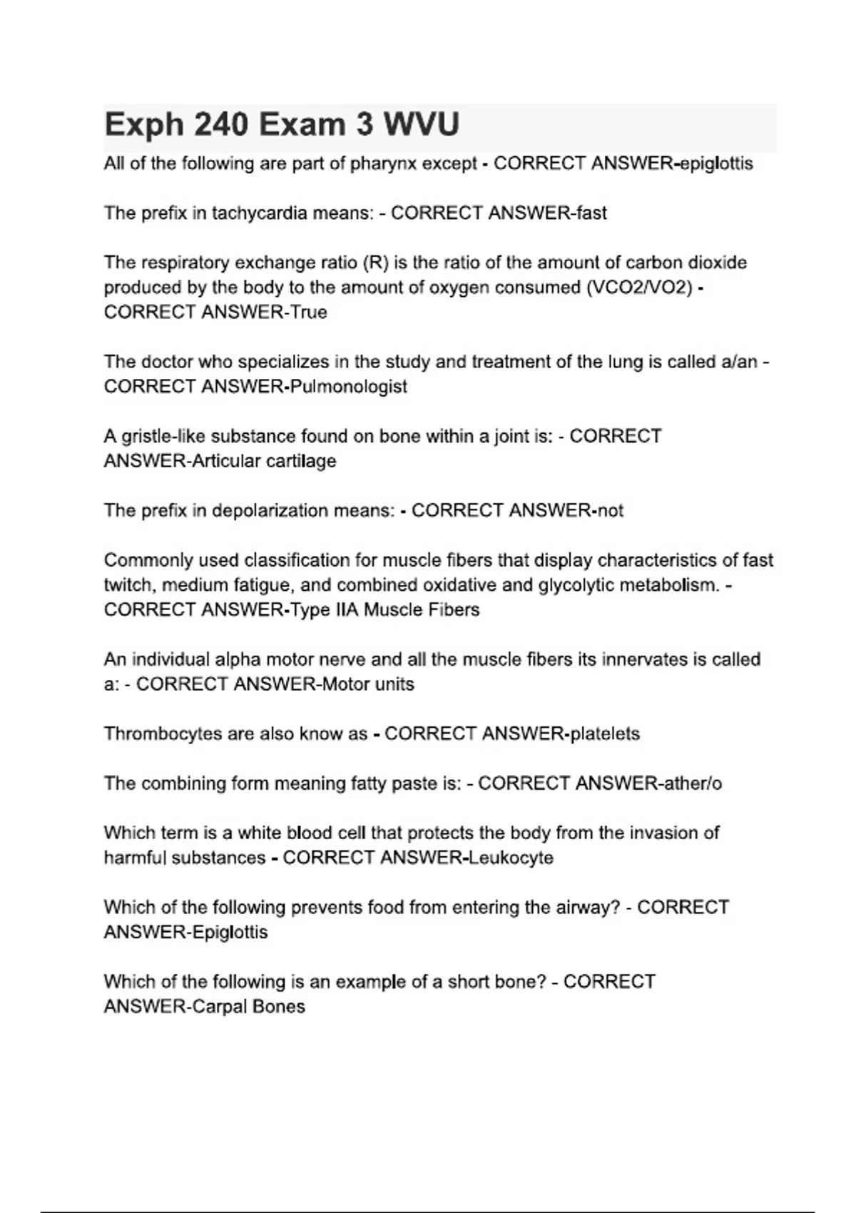 Exph 240 Exam 3 WVU questions and answers