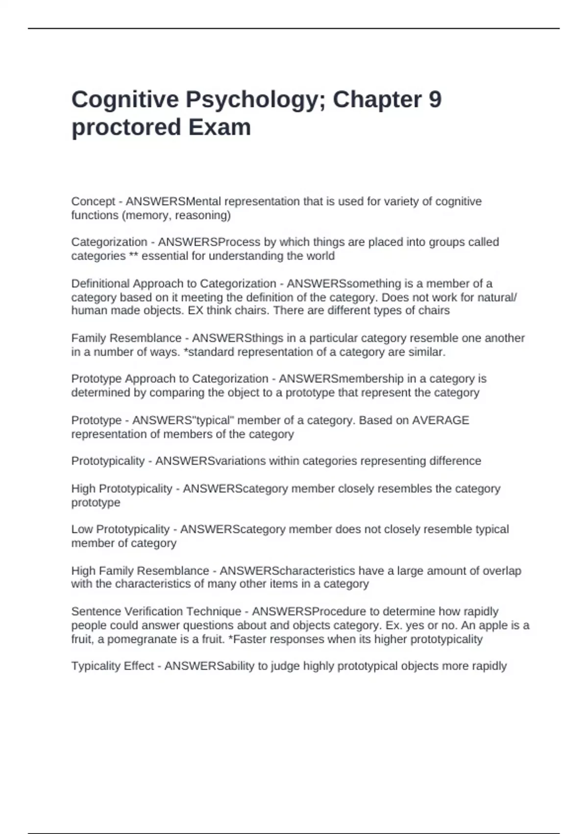 Prototype - ANSWERS"typical" member of a category. Based on AVERAGE