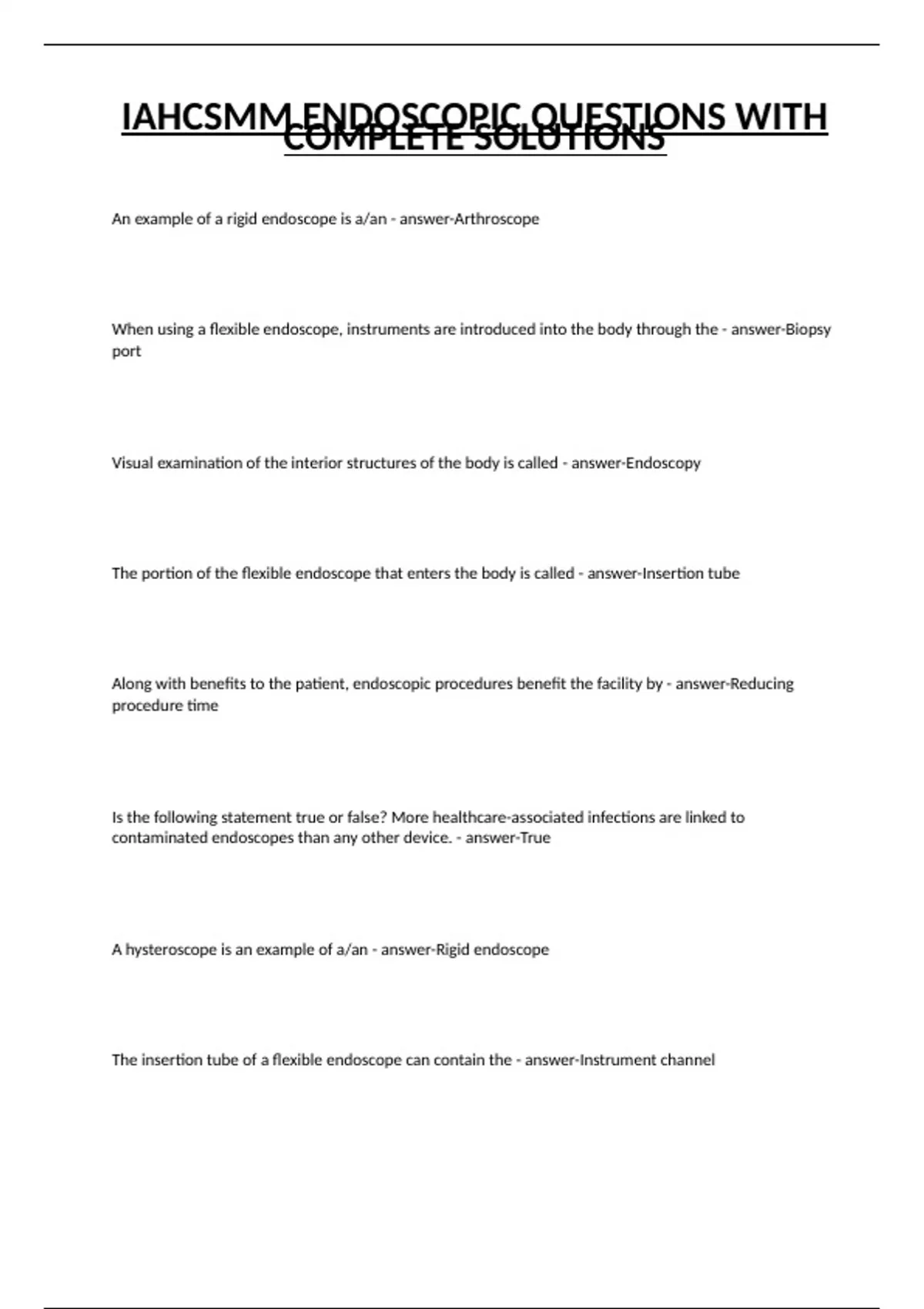 IAHCSMM ENDOSCOPIC QUESTIONS WITH COMPLETE SOLUTIONS