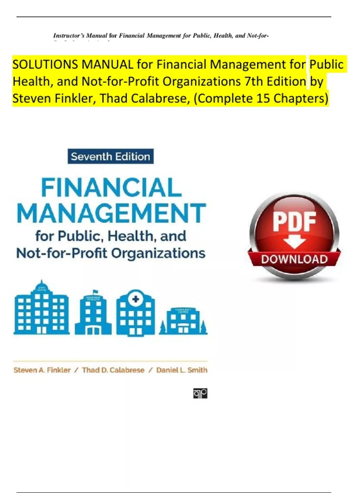 Instructor’s Manual for Financial Management for Public, Health, and Not-for-