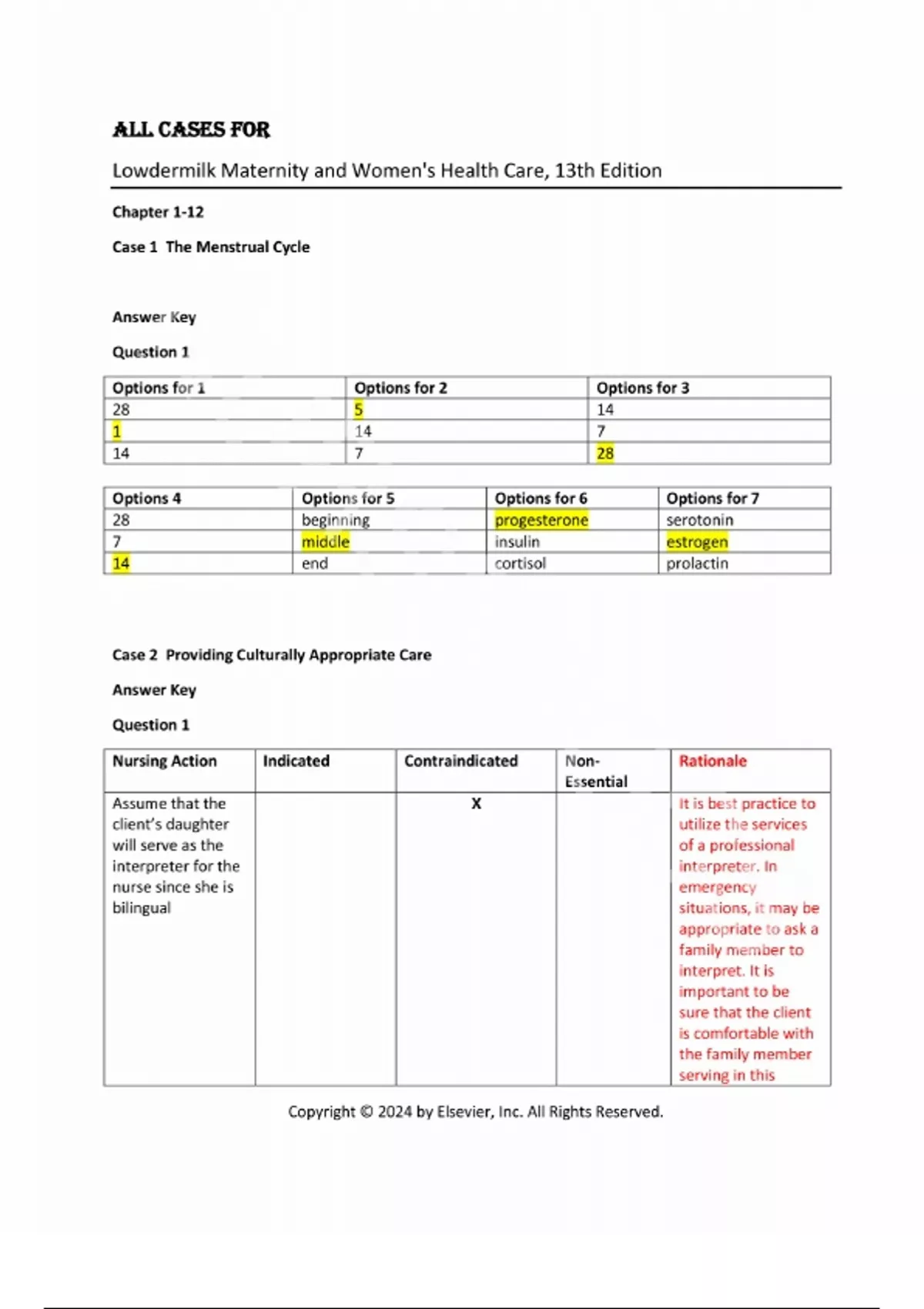 All cases for Lowdermilk Maternity and Women's Health Care, 13th Edition