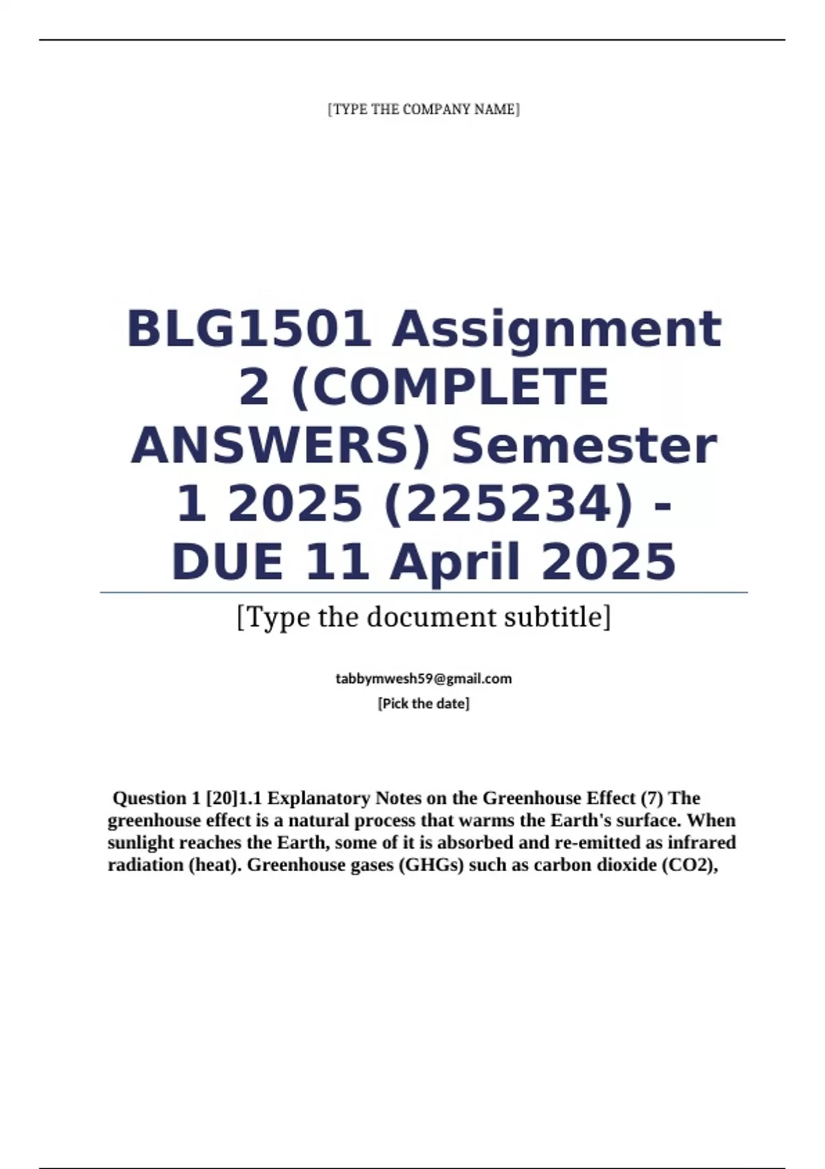 BLG1501 Assignment 2 (COMPLETE ANSWERS) Semester 1 2025 (225234) -