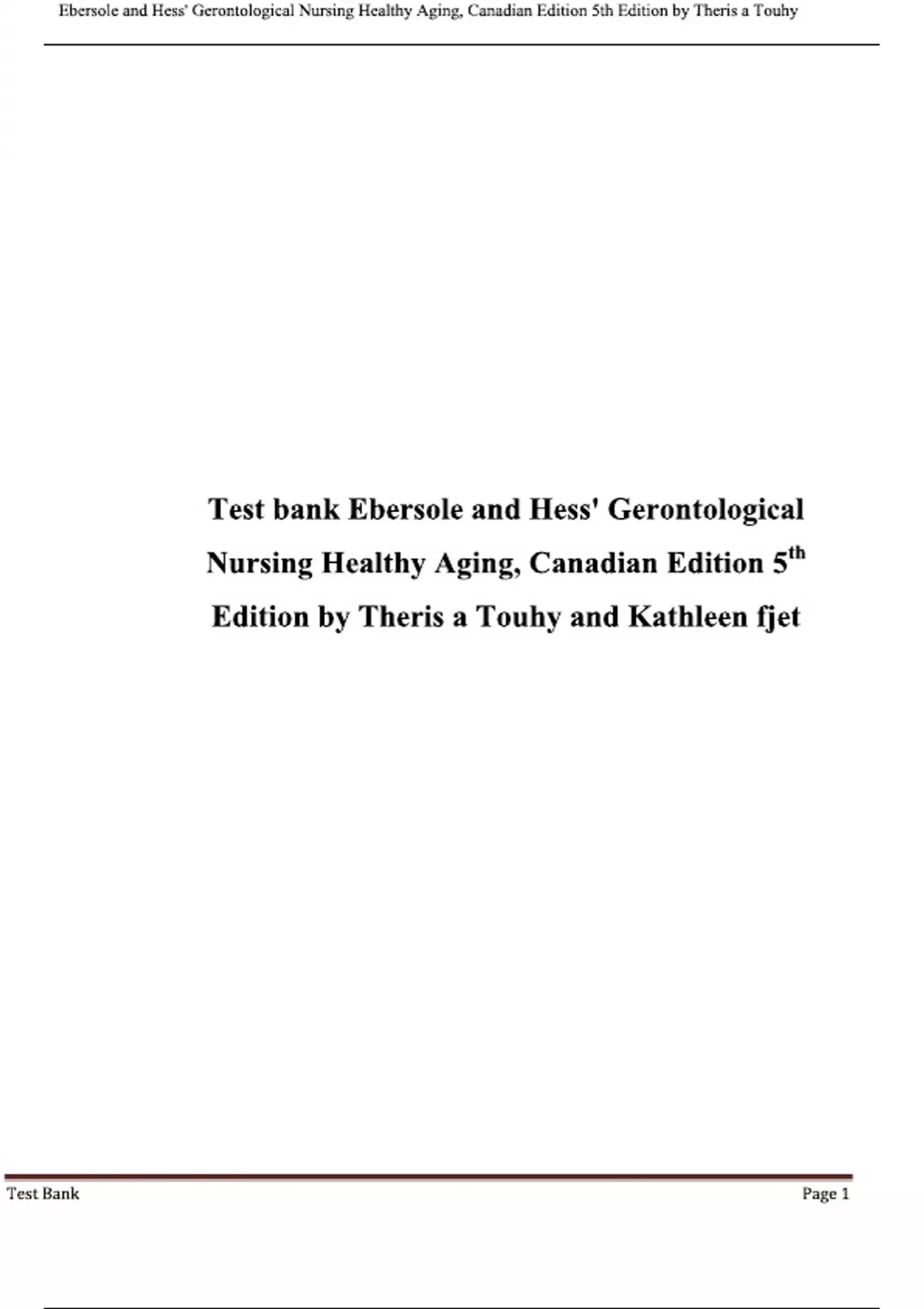 Test Bank For Ebersole and Hess- Gerontological Nursing & Healthy Aging,2024 (5th Canadian Edition),