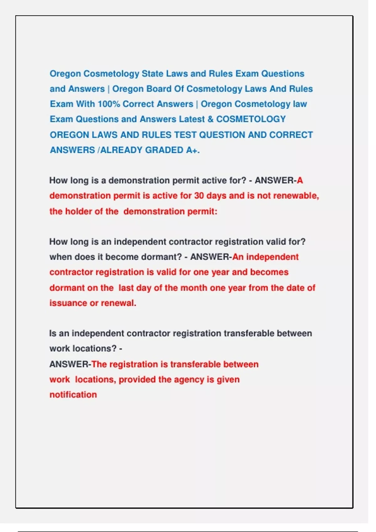 Exam With 100% Correct Answers | Oregon Cosmetology law