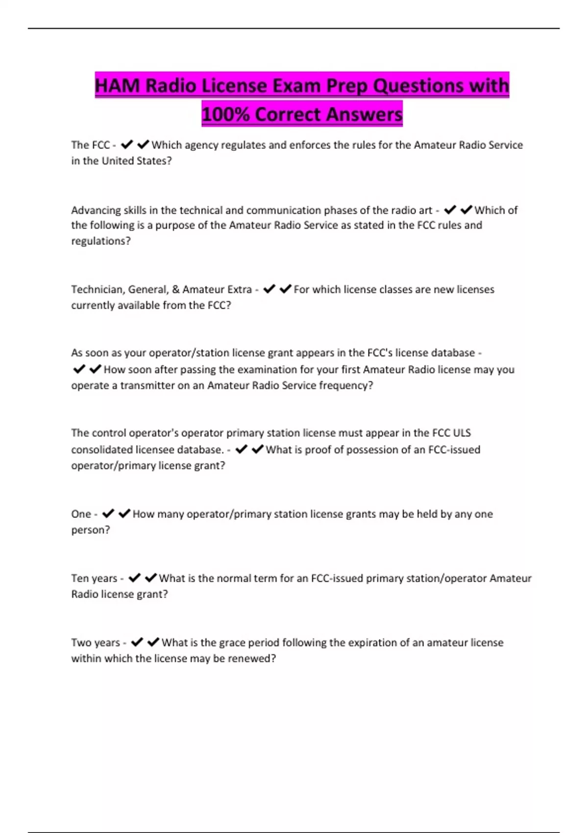 HAM Radio License Exam Prep Questions with