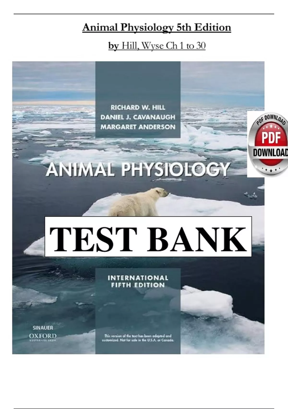 TEST BANK for Animal Physiology, 5th Edition Hill by Wyse and Anderson | Complete Chapters 1-30