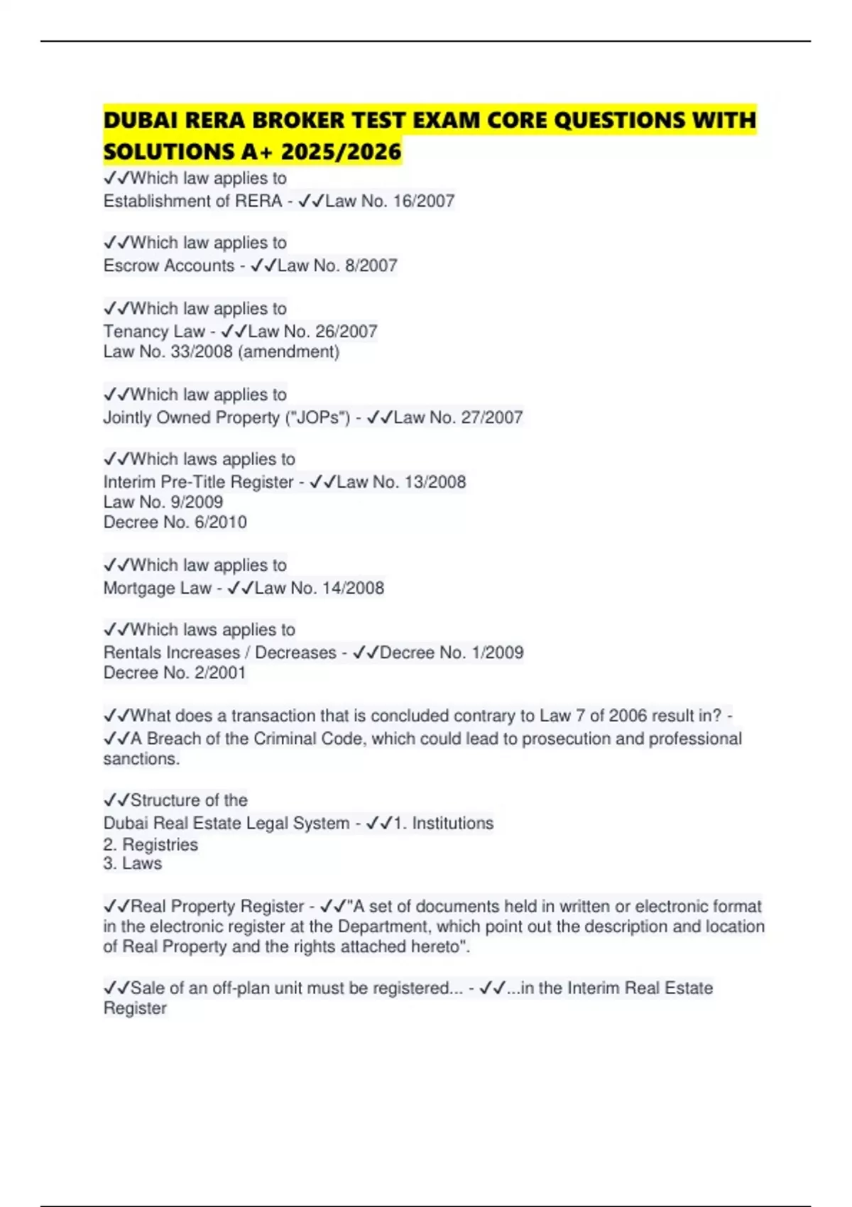 DUBAI RERA BROKER TEST EXAM CORE QUESTIONS WITH SOLUTIONS A+ 2025/2026