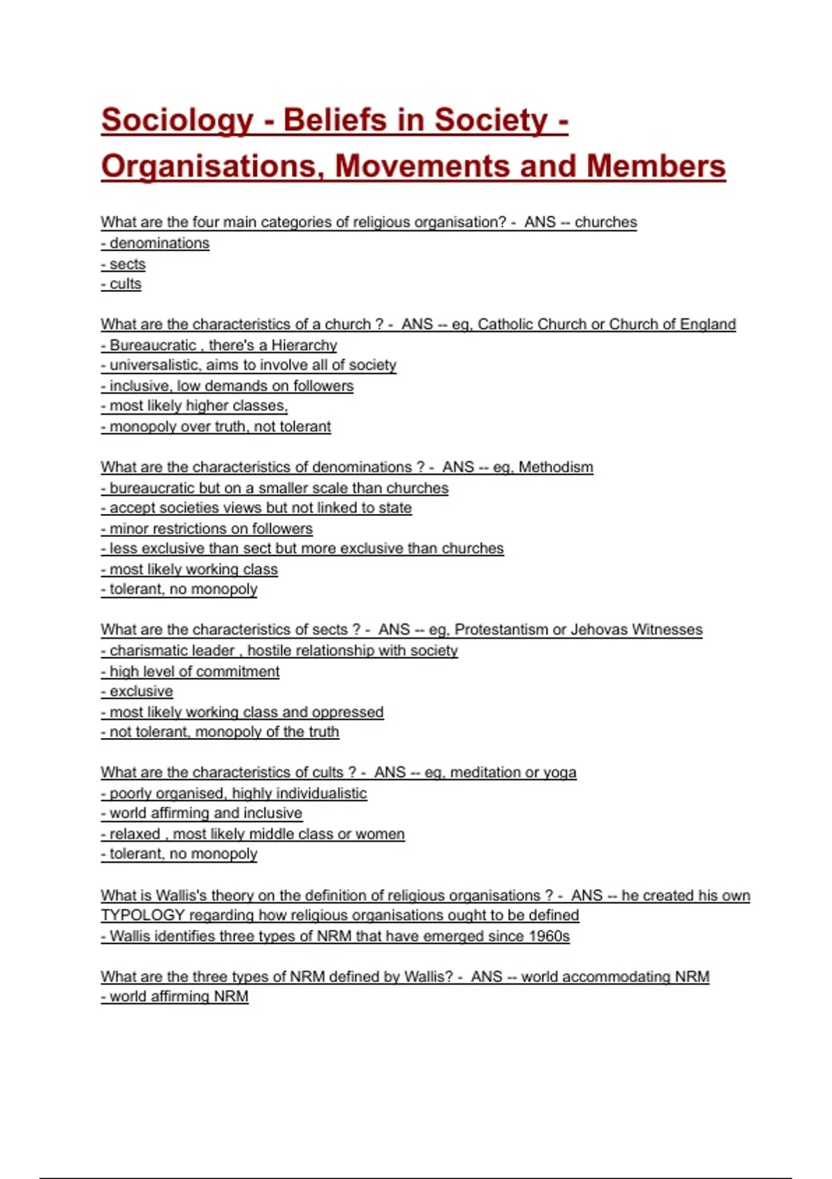 Sociology - Beliefs in Society -