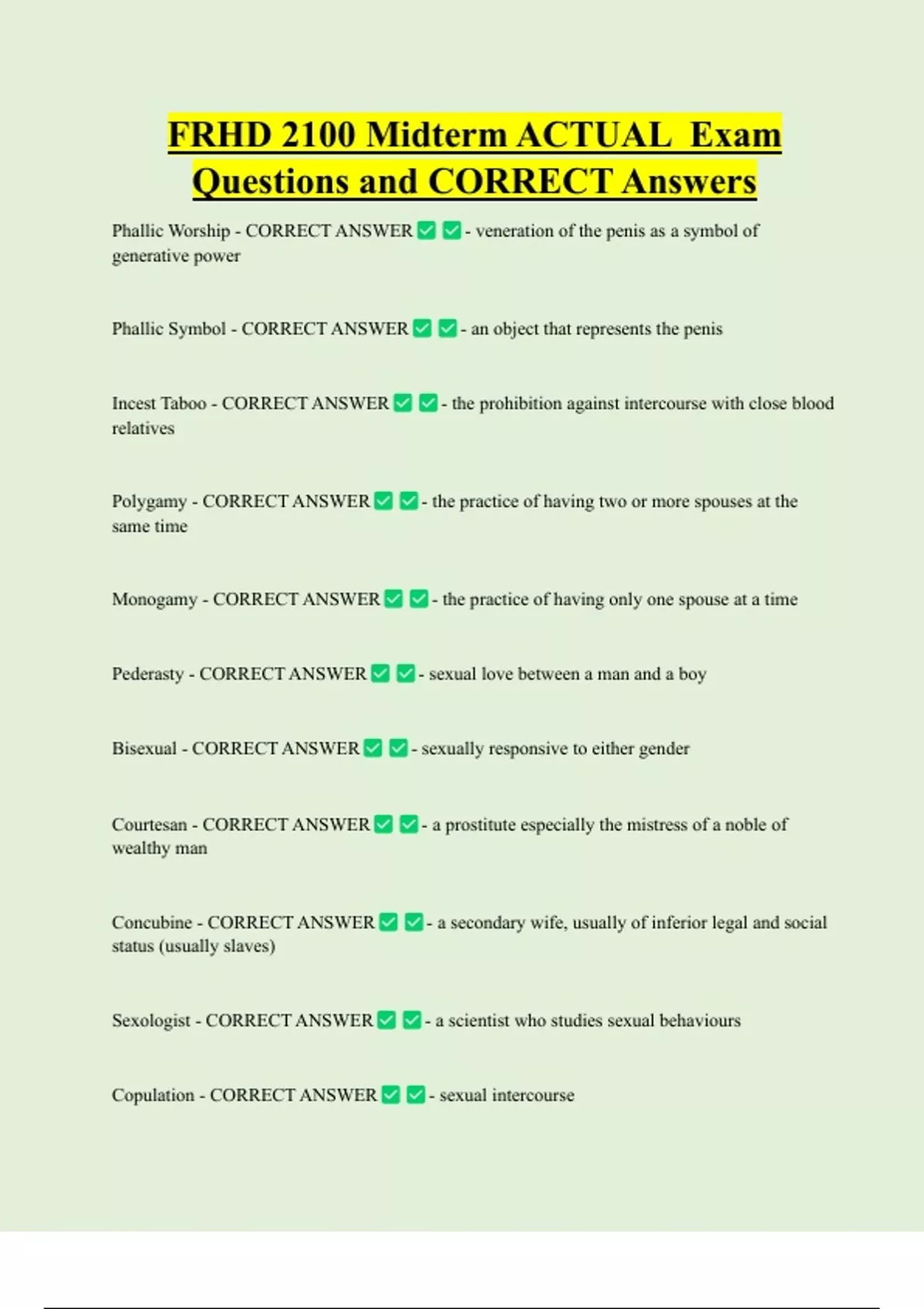Questions and CORRECT Answers