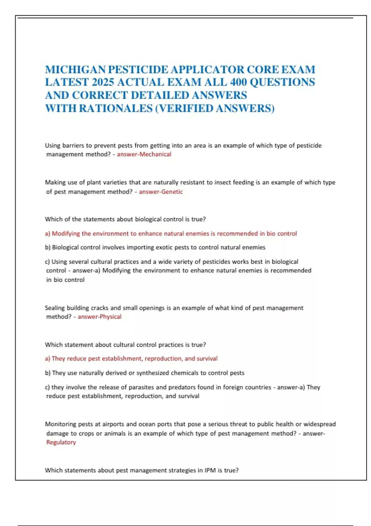 MICHIGAN PESTICIDE APPLICATOR CORE EXAM