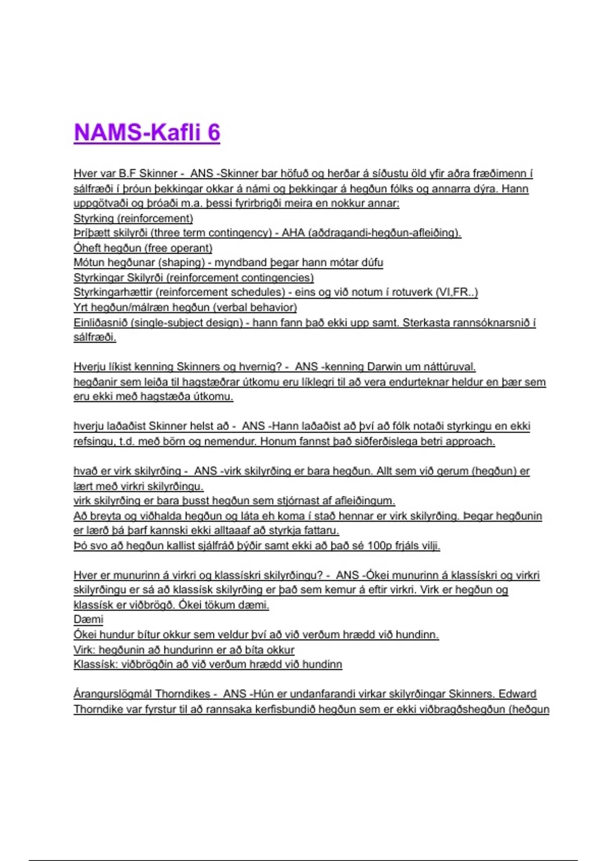 Skinner (bæði tíðni hennar almennt svo og tíðni réttrar hegðunar).