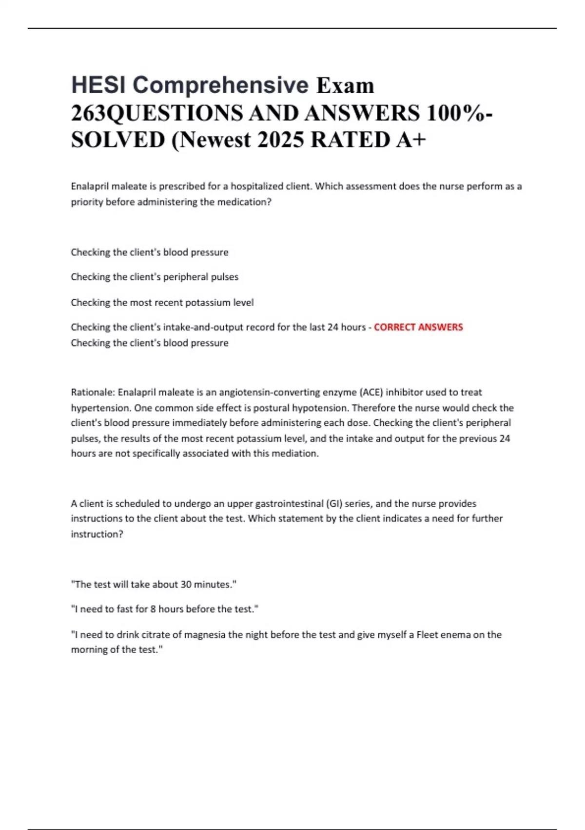 Summary HESI RN EXIT Exam 150Questions and Verified Answers GUARANTEED SUCCESS LATEST UPDATE 2025 RATED A+