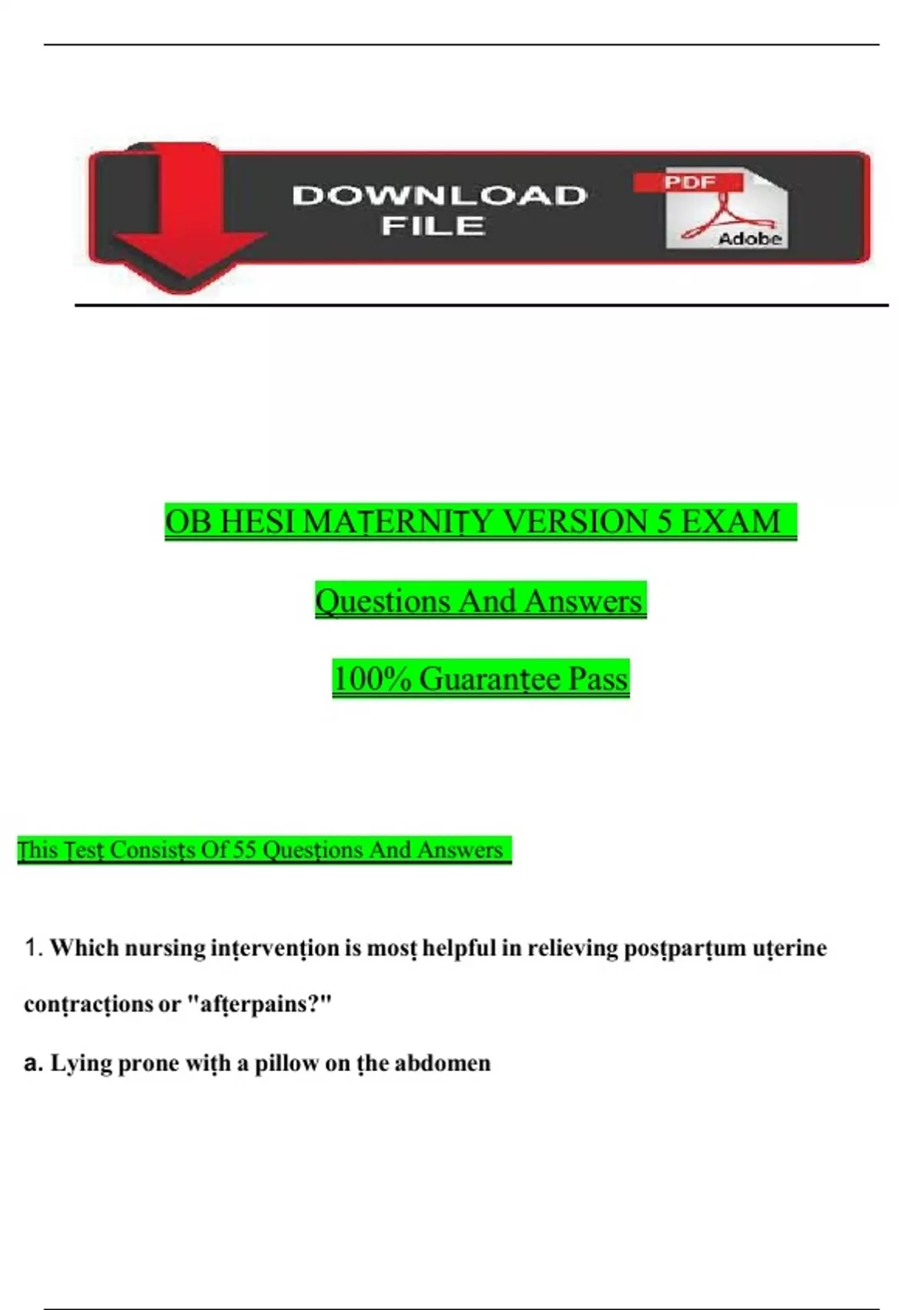 OB HESI MAṬERNIṬY VERSION 5 EXAM