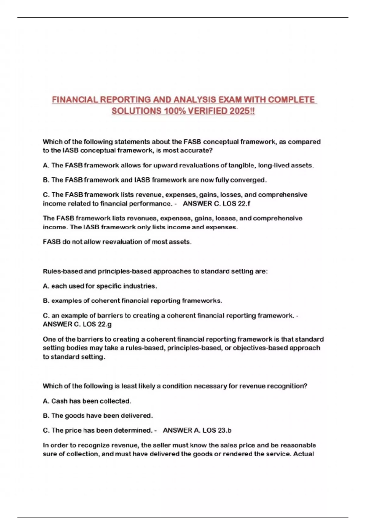 FINANCIAL REPORTING AND ANALYSIS EXAM WITH COMPLETE SOLUTIONS 100% VERIFIED 2025!!...