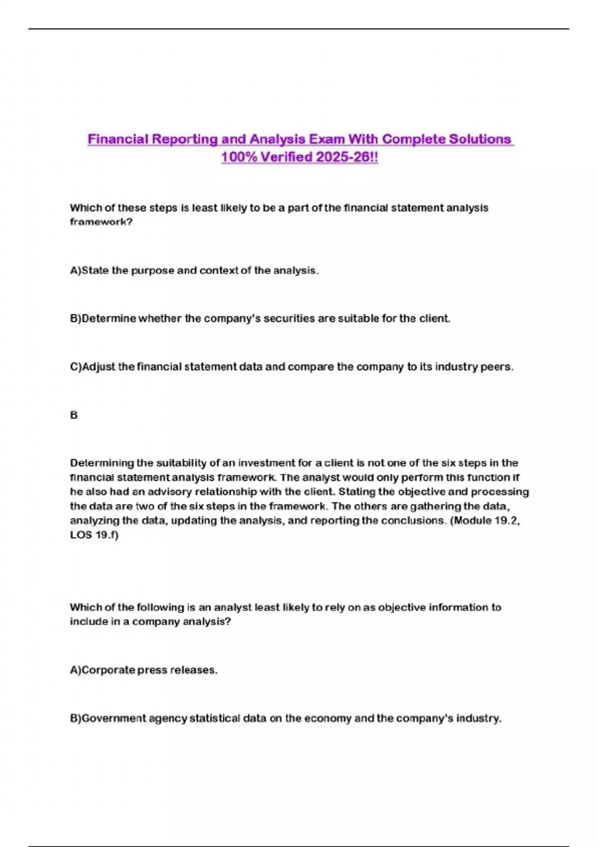 Financial Reporting and Analysis Exam With Complete Solutions 100% Verified 2025-26!!...