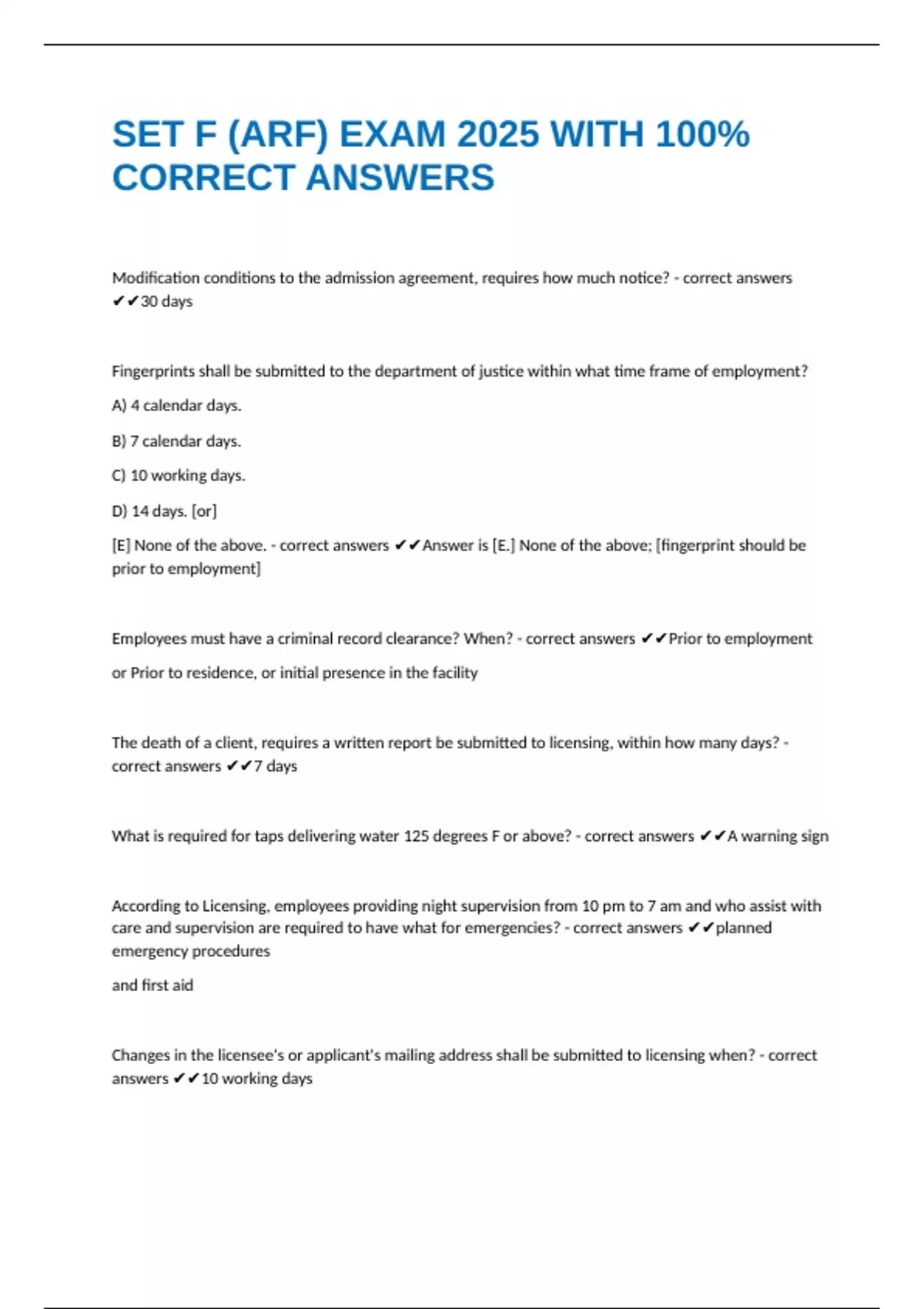 SET F (ARF) EXAM 2025 WITH 100% CORRECT ANSWERS
