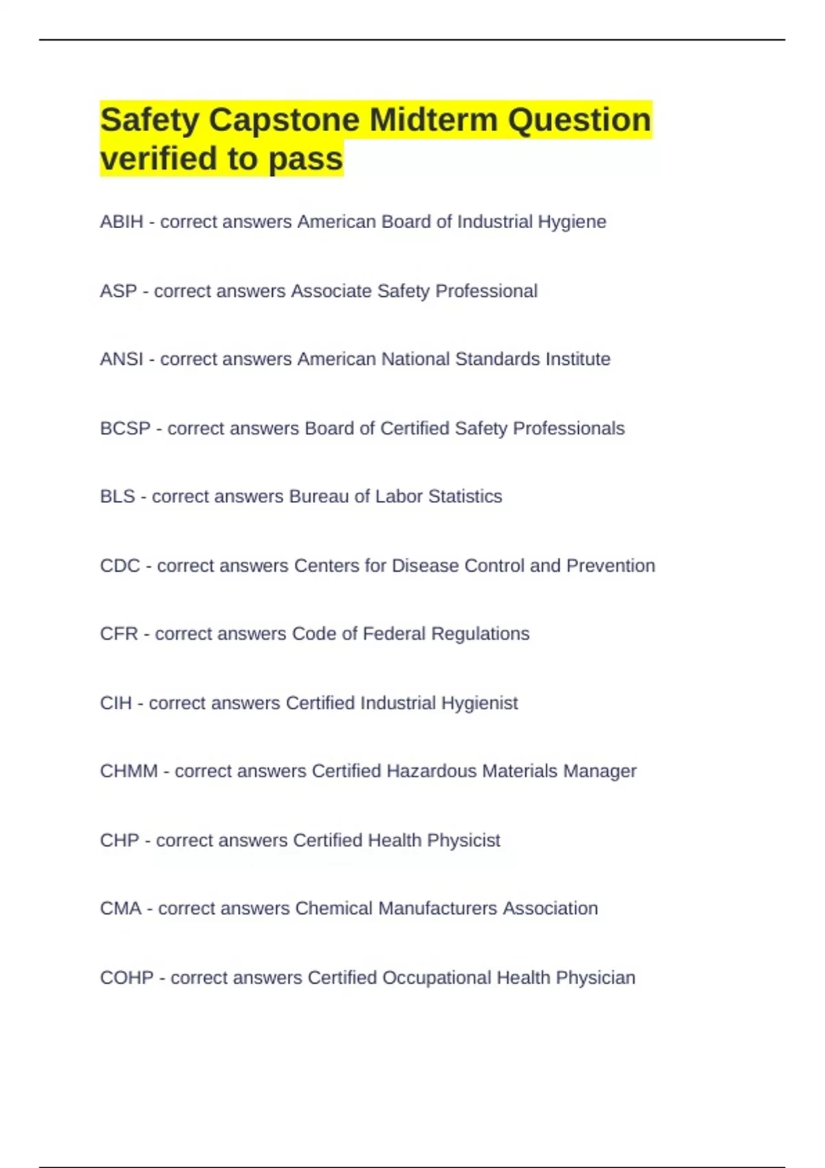 BCSP - correct answers Board of Certified Safety Professionals