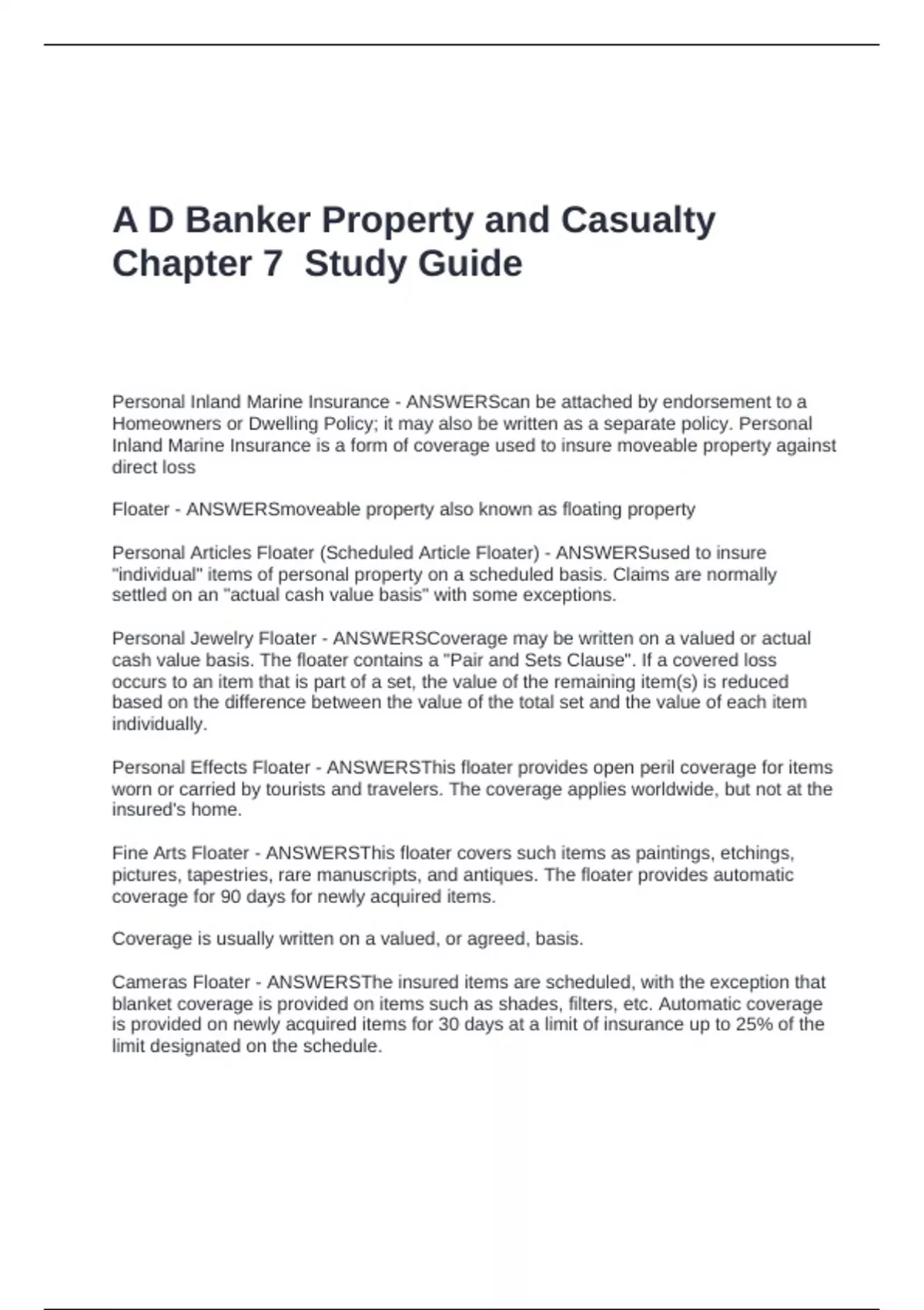 A D Banker Property and Casualty Chapter 7 Study Guide