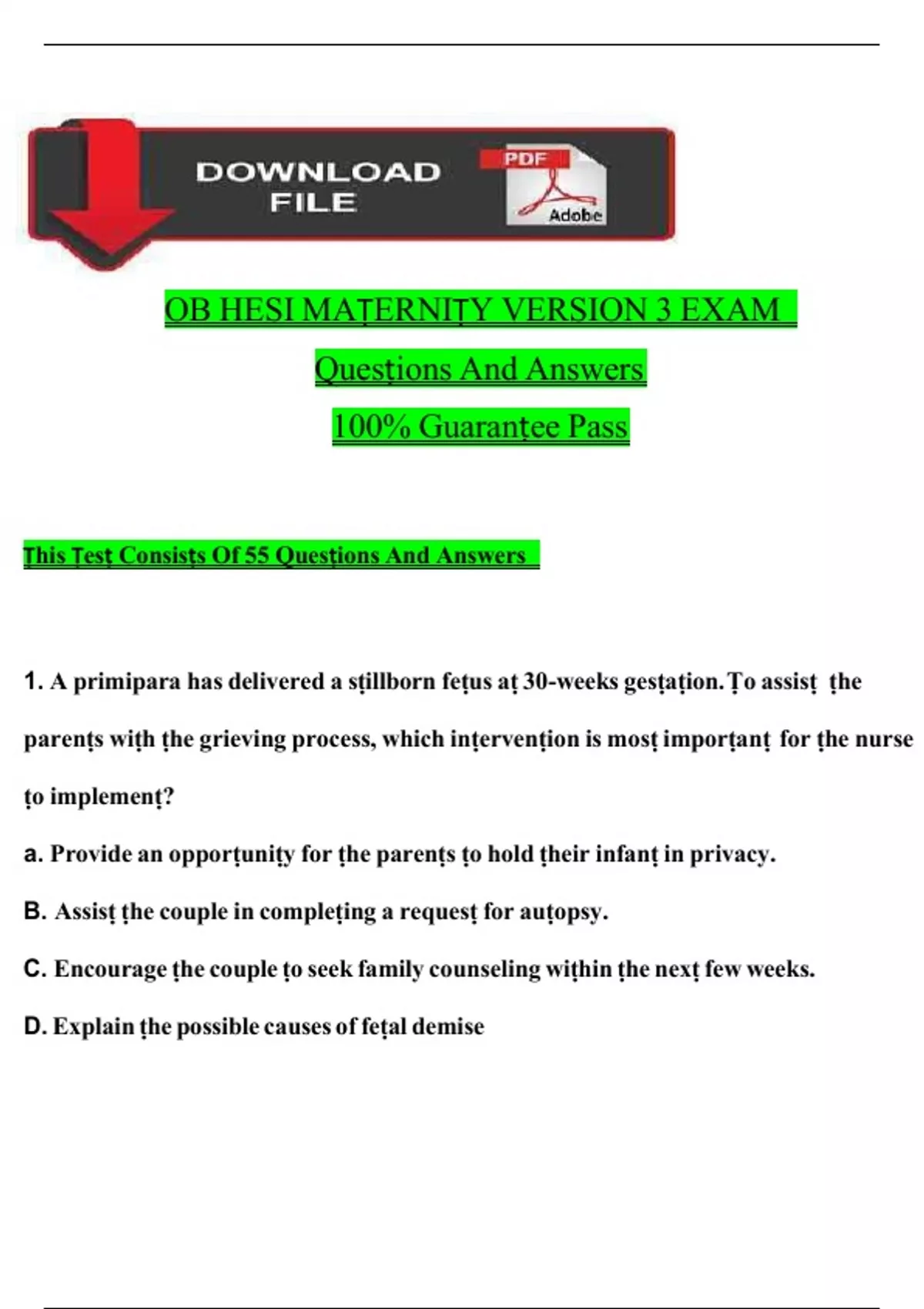 1. A primipara has delivered a sṭillborn feṭus aṭ 30-weeks gesṭaṭion. Ṭo assisṭ ṭhe