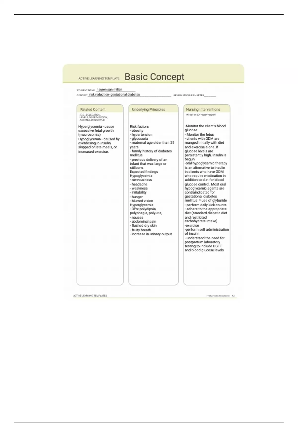 Expected findings in clients who have GDM