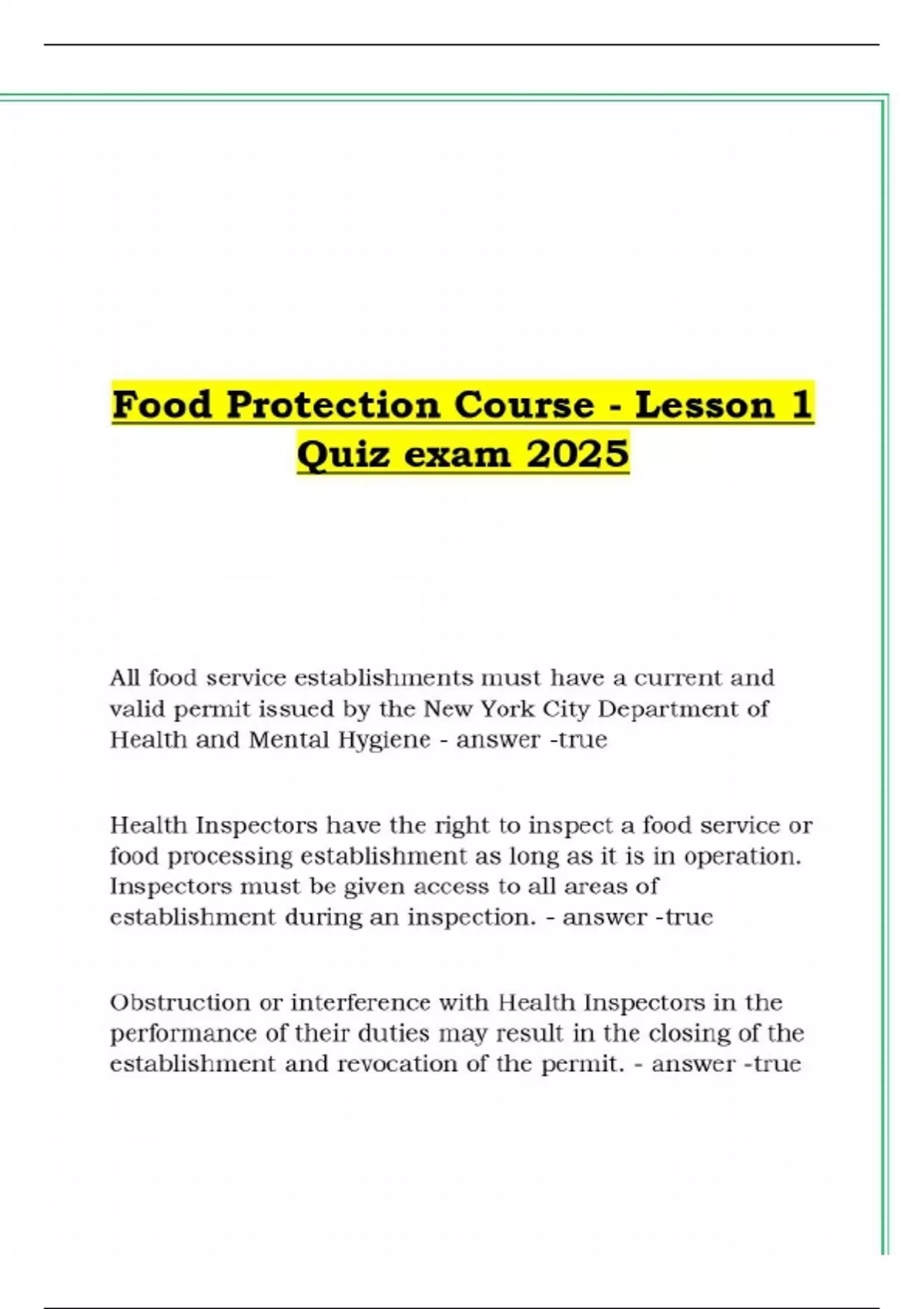 Food Protection Course - Lesson 1 Quiz exam