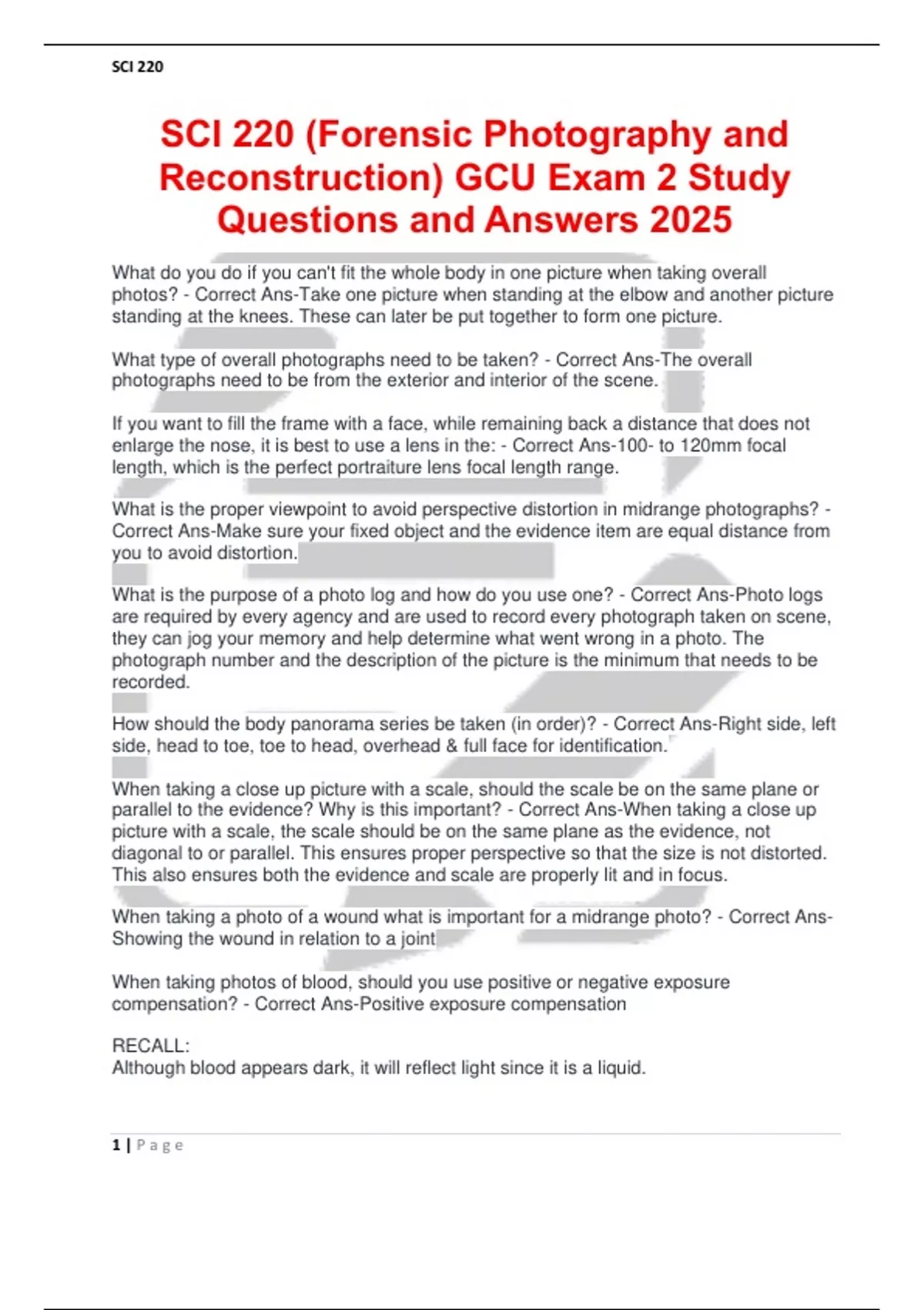 SCI 220 (Forensic Photography and