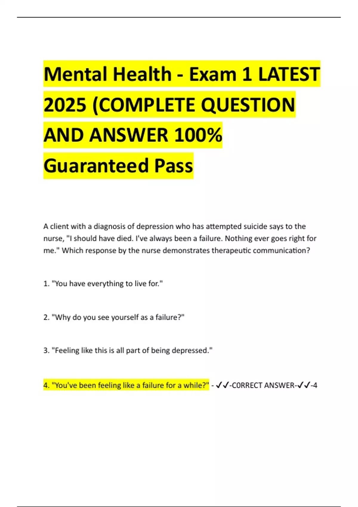 4. "You've been feeling like a failure for a while?" - ✔✔-C0RRECT ANSWER-✔✔-4