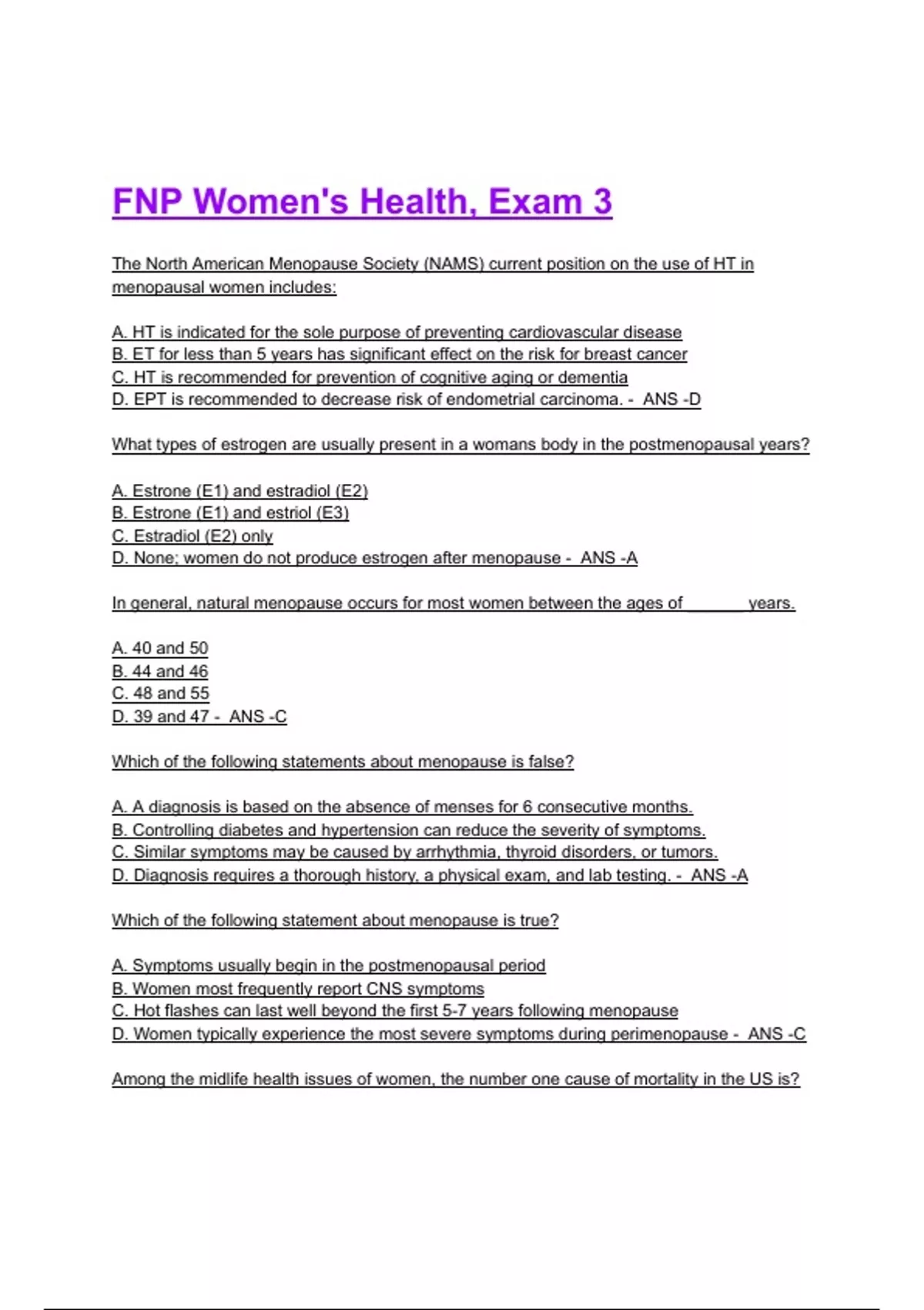 FNP Women's Health, Exam 3 Questions with complete solutions latest 2025/2026( A+ GRADED 100% VERIFIED).